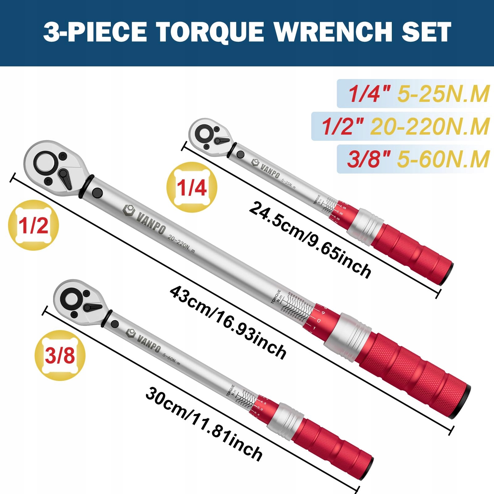 VANPO Zestaw Kluczy Dynamometrycznych 3 Sztuki Rower Motocykl Auto | Premium Supply