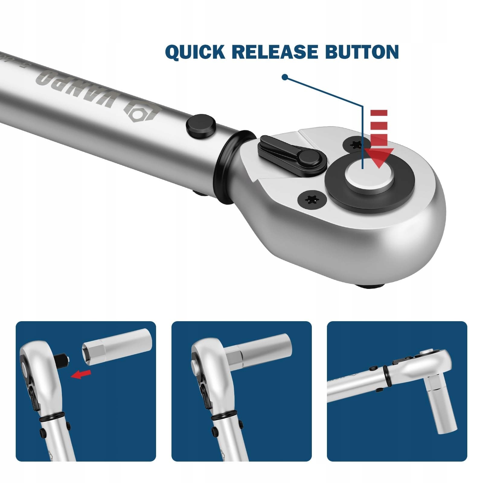 【Przycisk szybkiego zwolnienia】Ten klucz dynamometryczny 1/4 posiada przycisk szybkiego zwolnienia, który umożliwia łatwe montowanie i demontowanie akcesoriów, akcesoria są mocno trzymane i nie spadają łatwo. Jest wygodniejszy w użyciu. Klucz dynamometryczny wykonany jest z CR-MO o wyższej twardości.