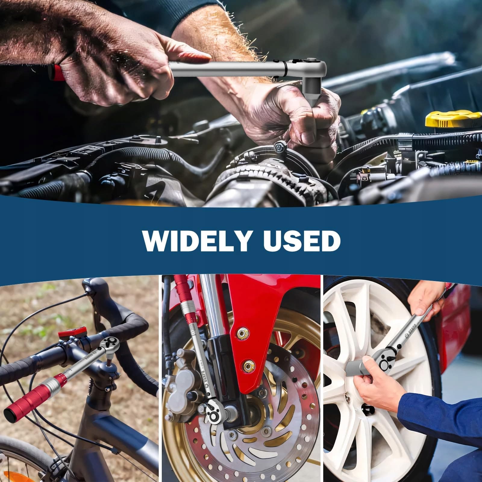 【Szerokie zastosowanie】Klucze dynamometryczne 1/2 mogą być używane do rowerów, motocykli, samochodów oraz do śrub kół, nakrętek kół, a także przy instalacji urządzeń, elektrotechnice itp.