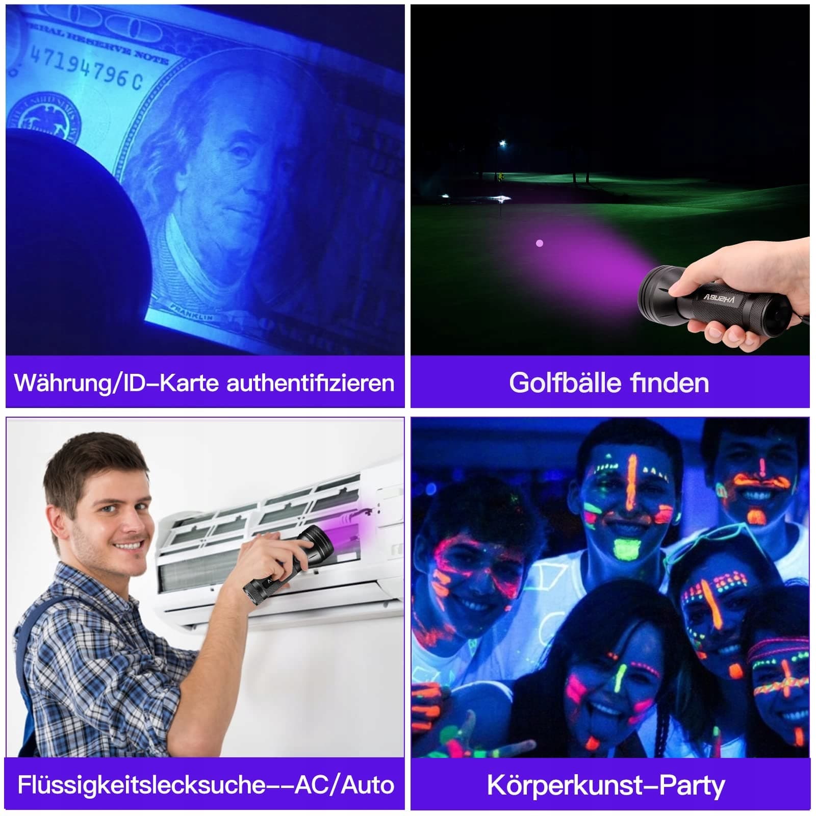 【Wszechstronne zastosowanie】Ta latarka UV 395 nm może nie tylko szybko wykrywać mocz zwierząt i kontrolować prace porządkowe, co zwiększa efektywność sprzątania. Ponadto pomaga także w wykrywaniu skorpionów oraz fałszywych dokumentów lub banknotów i jest praktycznym narzędziem do różnych zastosowań.