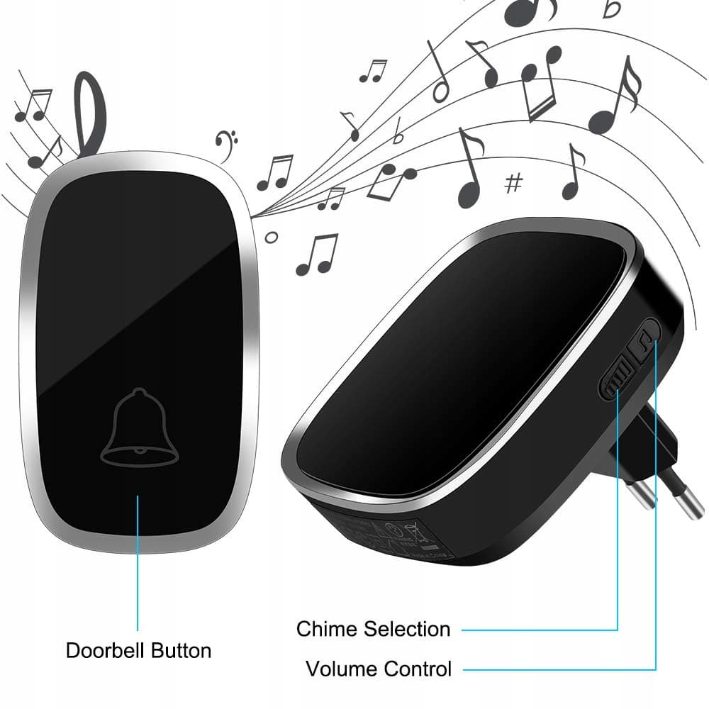 【Łatwa Instalacja】Wystarczy podłączyć odbiornik do gniazdka, a następnie można wybrać dźwięk dzwonka i ustawić głośność za pomocą bocznych przycisków. Bardzo łatwy w obsłudze, a nawet jeśli wyjmiesz odbiornik z gniazdka, wybrany dźwięk dzwonka zostanie zapisany dzięki funkcji pamięci.