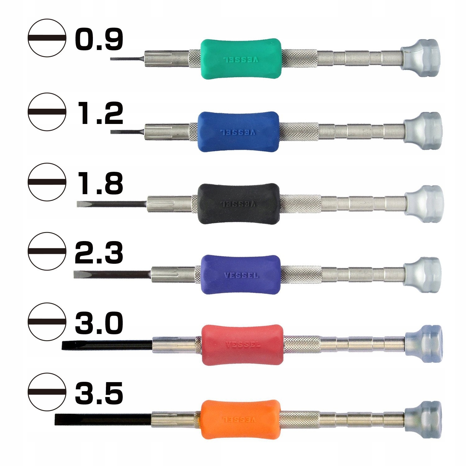 VESSEL Zestaw Precyzyjnych Śrubokrętów 6 Sztuk Różne Rozmiary