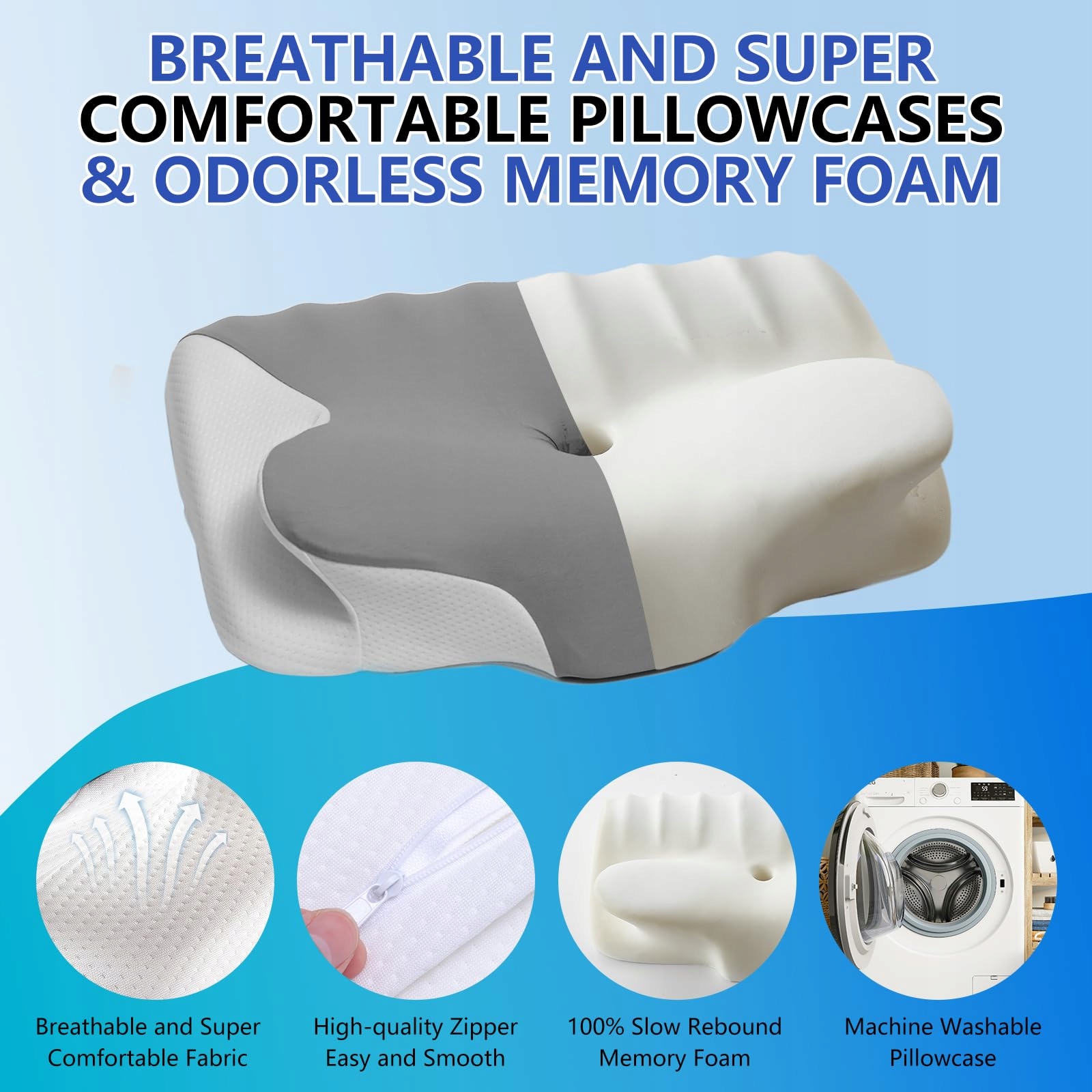 vicihoho Poduszka z pianki memory, poduszka na szyję, poduszka podtrzymująca szyję i ramiona, odpowiednia do różnych pozycji snu, rozmiar: 60 x 41 x 9/12cm (jasnoszary)