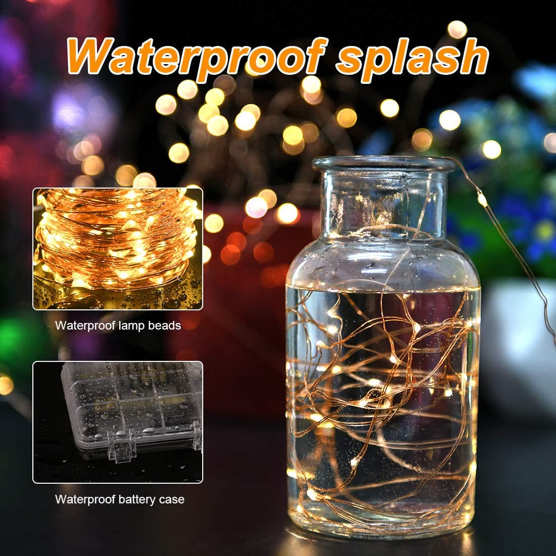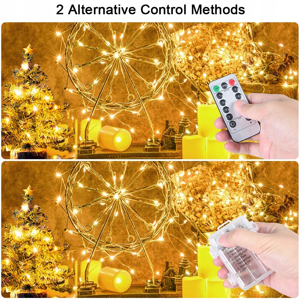 🎄[Całkowicie wodoodporny] - Drut i koraliki są całkowicie wodoodporne. Wysoka ocena wodoodporności, wytrzymuje lekki deszcz i rozlane płyny. Dzięki wygodnemu zasilaniu bateryjnemu, można łatwo dekorować w dowolnym miejscu.