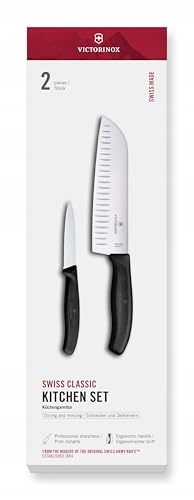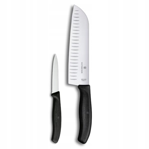 Zestaw noży kuchennych Victorinox Swiss Classic Profi, 2-częściowy, w tym nóż do warzyw i nóż Santoku, nóż uniwersalny, proste ostrza, 8+17 cm, ostry, czarny