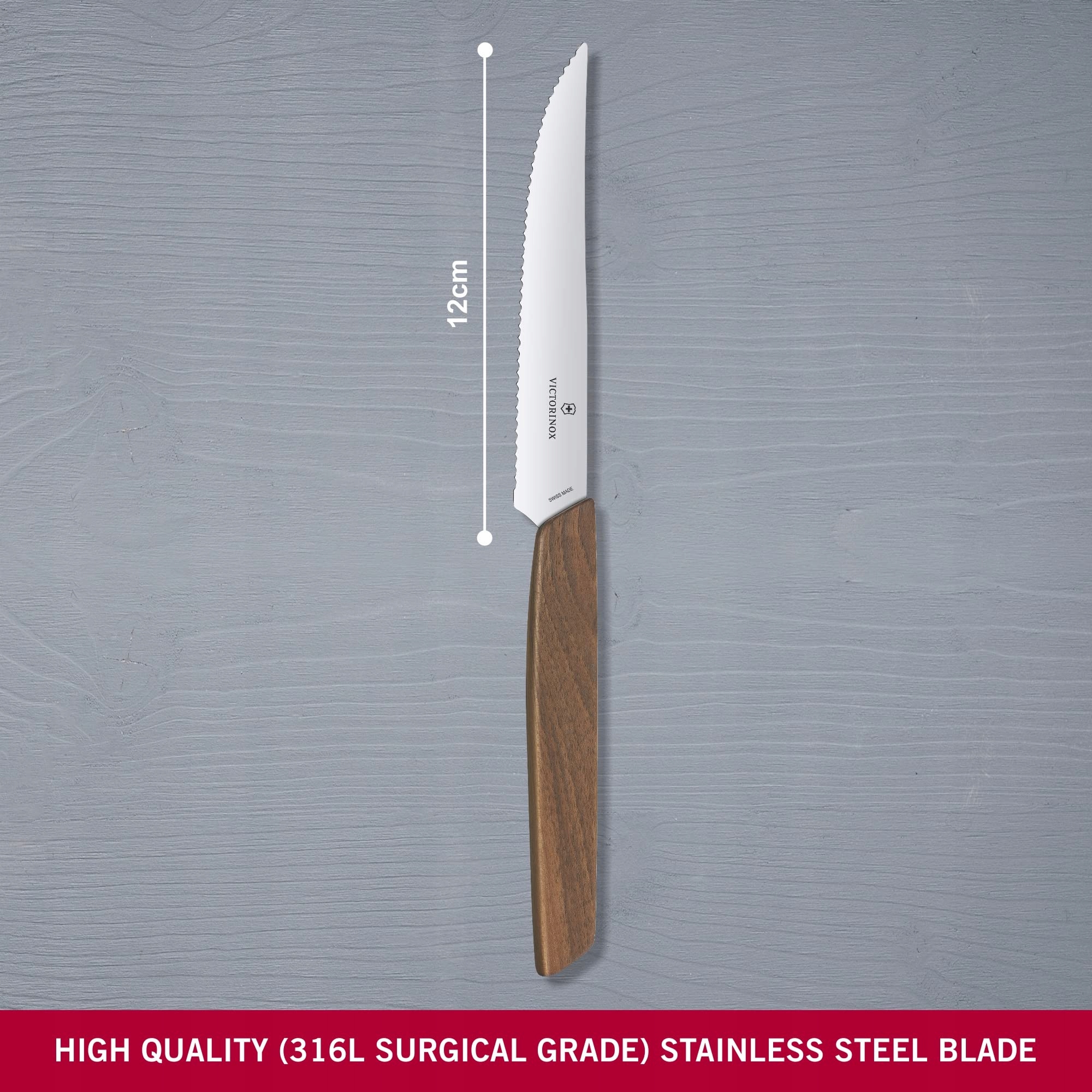 Victorinox, Swiss Modern, Zestaw noży do steków Profi, 2-częściowy, Ekstremalnie ostra klinga, Ząbkowana, 12 cm, Elegancki uchwyt z drewna, Stal nierdzewna, brązowy