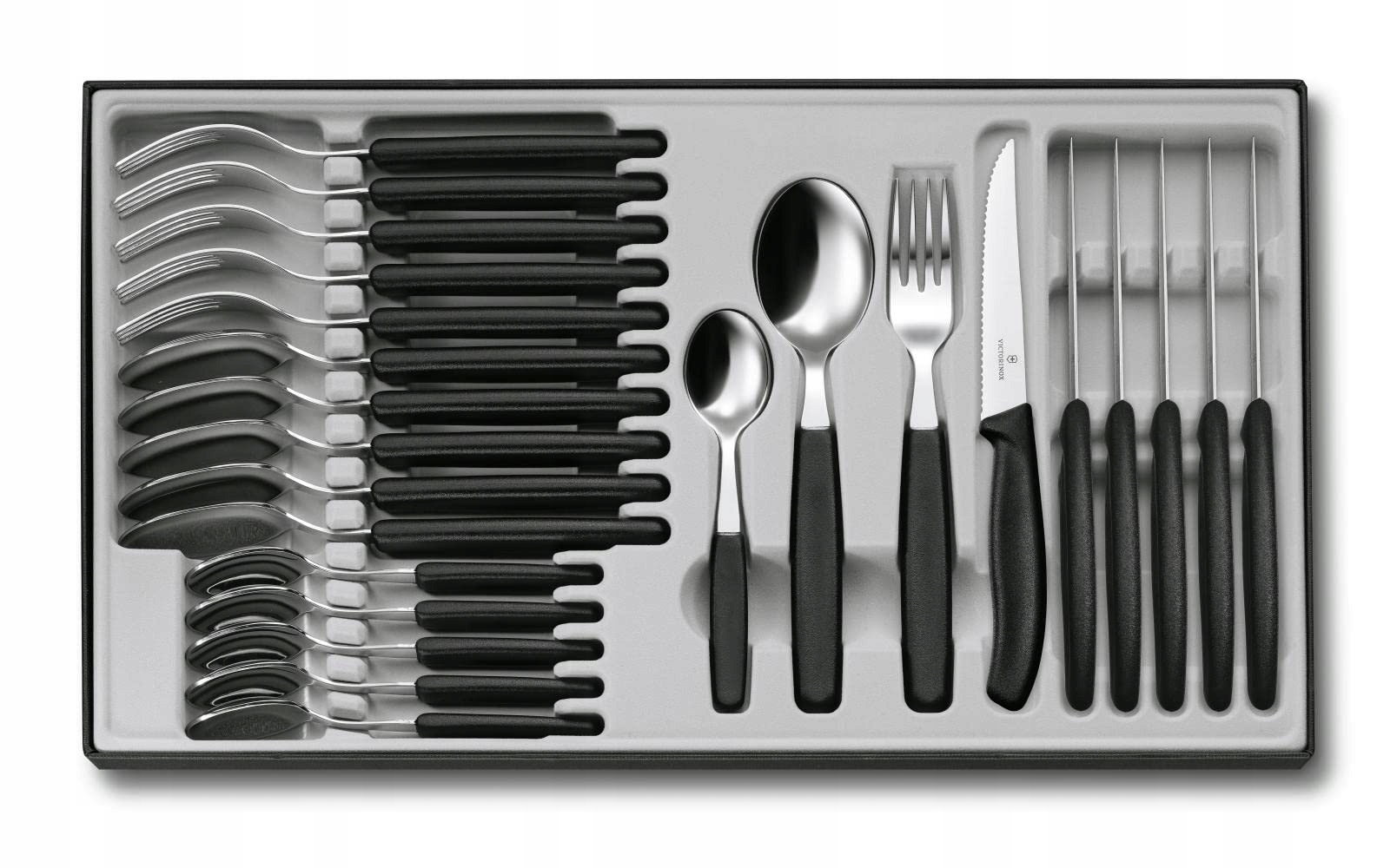 VICTORINOX Zestaw Sztućców 24 Elementy Ostre Ostrza Stal Nierdzewna Czarny | Premium Supply