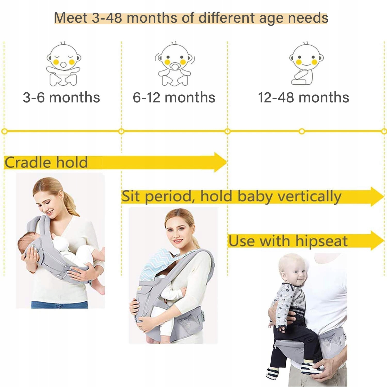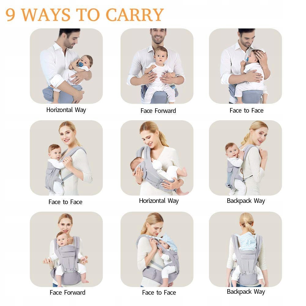 [Różne metody noszenia] - Istnieje 6 wariantów noszenia, które można wybrać w zależności od etapu wzrostu, aby najlepiej pasowały do Twojego dziecka. Pasy i siedzisko (miękkie poduszki) mogą być używane osobno. Jednocześnie maksymalne obciążenie transportowe może osiągnąć 20 kg.