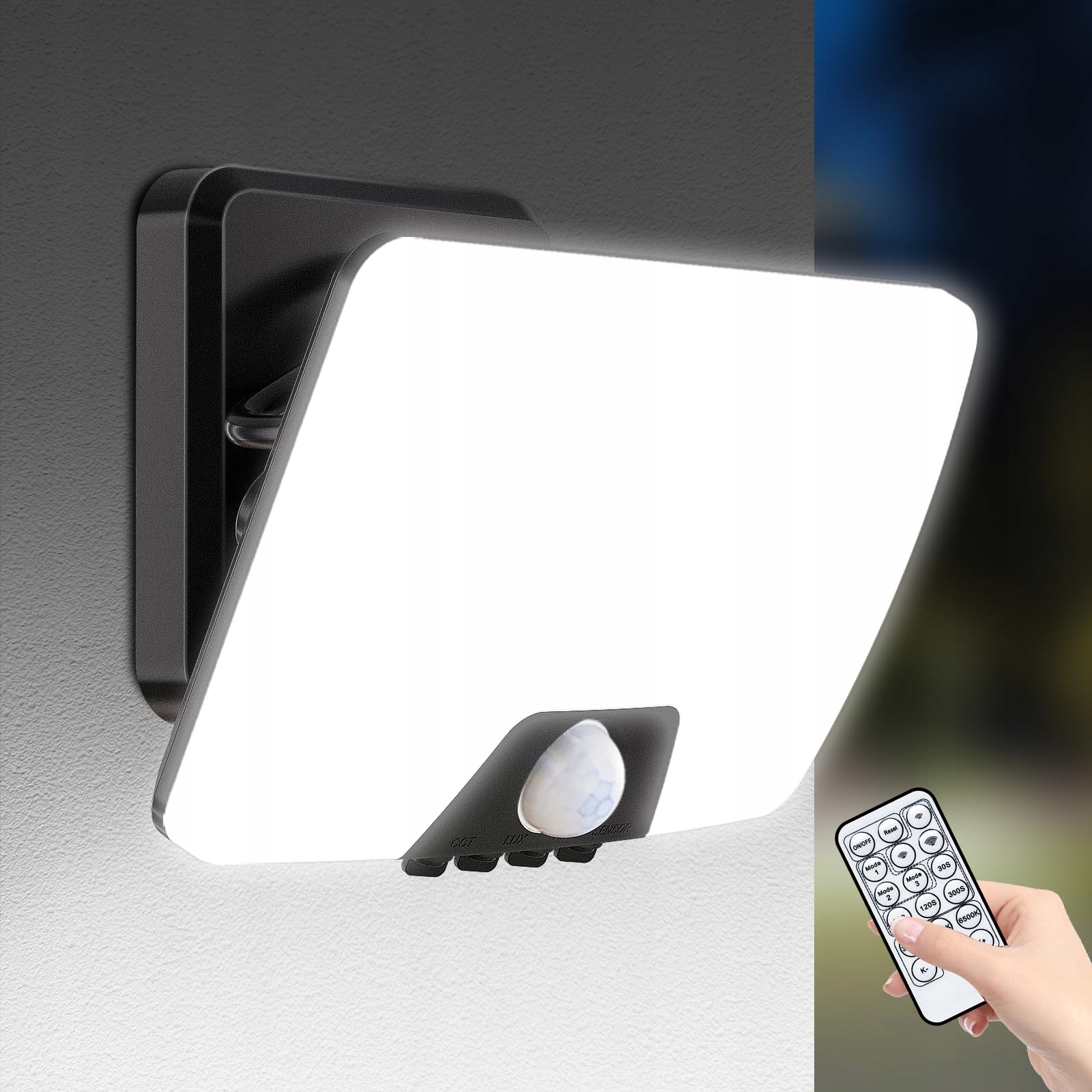 【Jednoprzyciskowa regulacja】Bez wspinania się po drabinach czy ręcznego przełączania – steruj włączaniem i wyłączaniem, trybami oświetlenia, temperaturą barwową (3000K-6500K), zasięgiem czujnika ruchu (1-8m) oraz timerem (30/60/120/300s) wygodnie za pomocą pilota. Idealne do poprawy bezpieczeństwa i atmosfery, to wszechstronne i łatwe w obsłudze oświetlenie typu all-in-one dostępne na wyciągnięcie ręki. Alternatywnie ustawienia można zmieniać również za pomocą przycisków na dolnej części produktu. Do pilota potrzebne są 2 baterie AAA (brak w zestawie)
