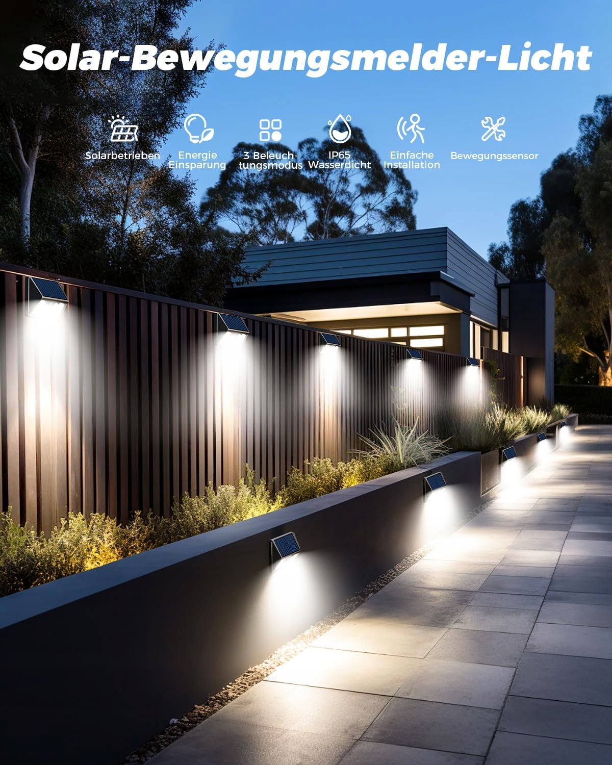 vighep Lampy solarne na zewnątrz z czujnikiem ruchu, 6 sztuk 3 tryby LED superjasne lampy solarne, wodoodporna lampa ścienna solarna IP65 na ogród, podwórko, ścianę, schody, taras, drzwi garażowe