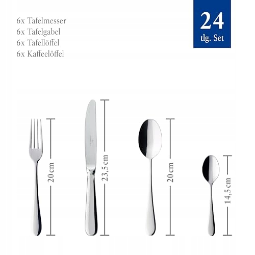 Villeroy & Boch - Oscar Zestaw Sztućców 24-częściowy dla 6 osób, nadający się do zmywarki, nierdzewny, zestaw sztućców, sztućce do jedzenia, zestaw noży, widelców i łyżek, zestaw sztućców, zestaw ze stali nierdzewnej, stal nierdzewna