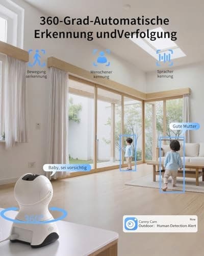 【𝟑𝟔𝟎° 𝐊𝐈 𝐖𝐲𝐤𝐫𝐲𝐰𝐚𝐧𝐢𝐞 𝐫𝐮𝐜𝐡𝐮 𝐢 𝐬𝐥𝐞𝐝𝐳𝐞𝐧𝐢𝐞】Kamera monitorująca do użytku wewnętrznego wyposażona jest w najnowsze funkcje wykrywania i śledzenia oparte na sztucznej inteligencji, oferując dokładność śledzenia do 99%. Możesz ustawić, aby używać tylko funkcji wykrywania ruchu lub wykrywania osób. Dodatkowo otrzymasz powiadomienia przez aplikację (Canny Cam). Dzięki temu zawsze wiesz, co dzieje się w domu, bez obaw o bezpieczeństwo swojej rodziny.