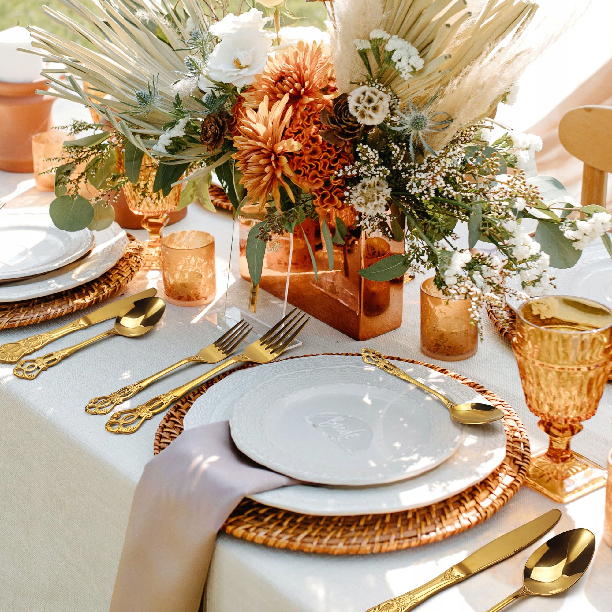 【Pierwszorzędna jakość】Złote sztućce wykonane są z wysokiej jakości, bezpiecznej dla żywności stali nierdzewnej, co gwarantuje długą żywotność i optymalną wydajność.