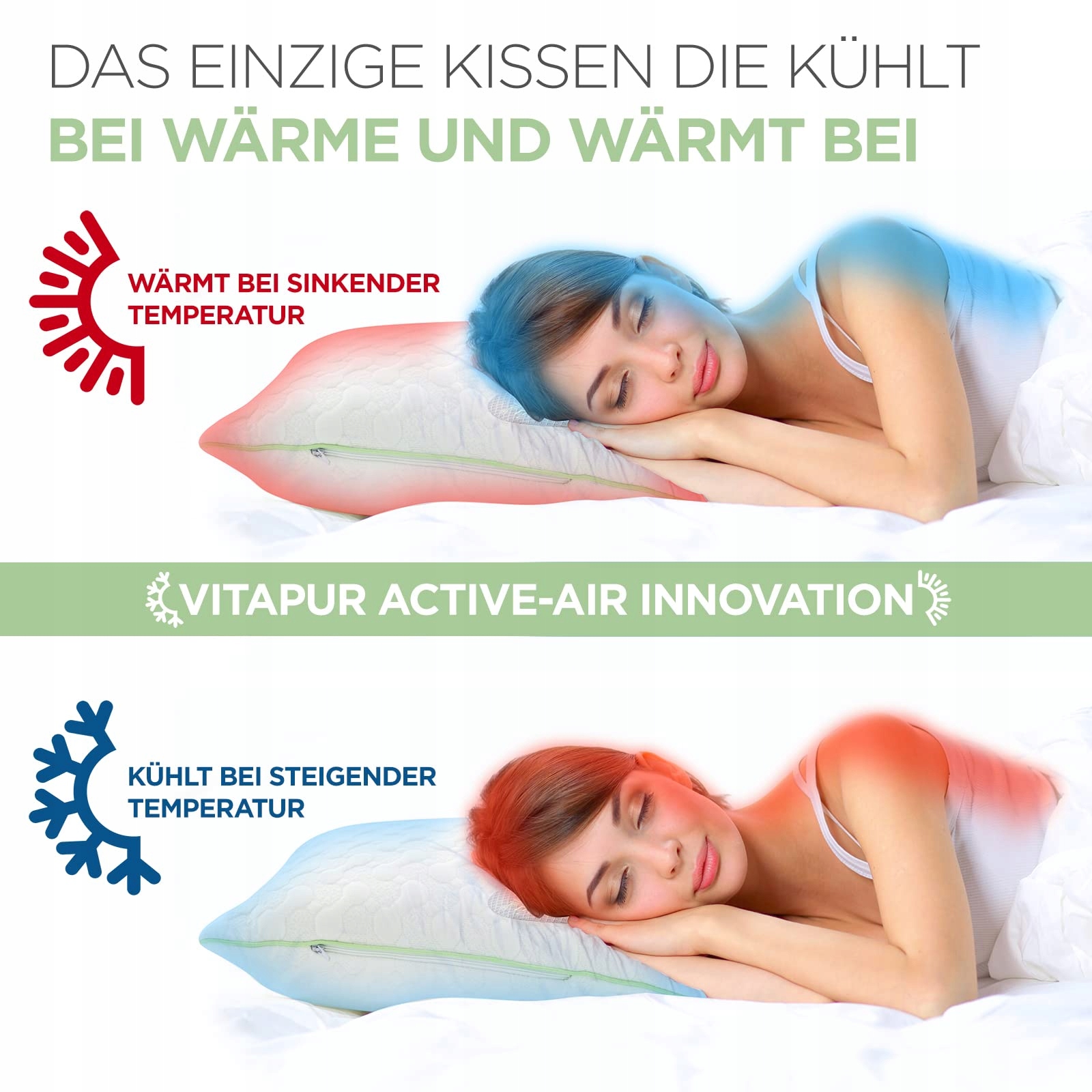 Vitapur Poduszka 40 x 80 Aloe Vera - Chłodna latem, ciepła zimą - Nr 1. Poduszka dla śpiących na boku z działaniem kojącym - Bardzo oddychająca
