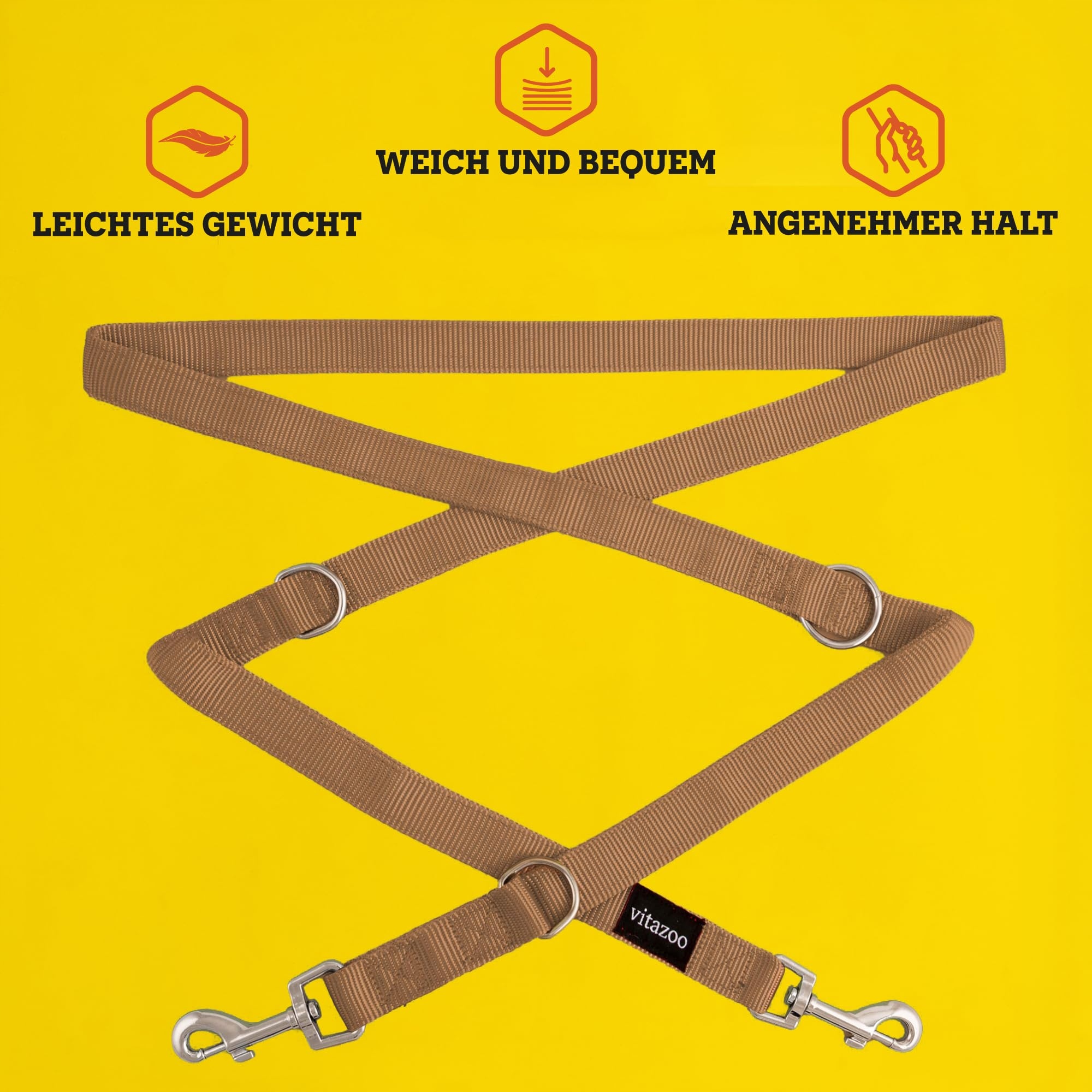 vitazoo smycz dla psa w kolorze brązowym 2mx2,5cm, masywna i regulowana w 3 długościach - odpowiednia dla dużych i silnych psów - smycz, podwójna smycz