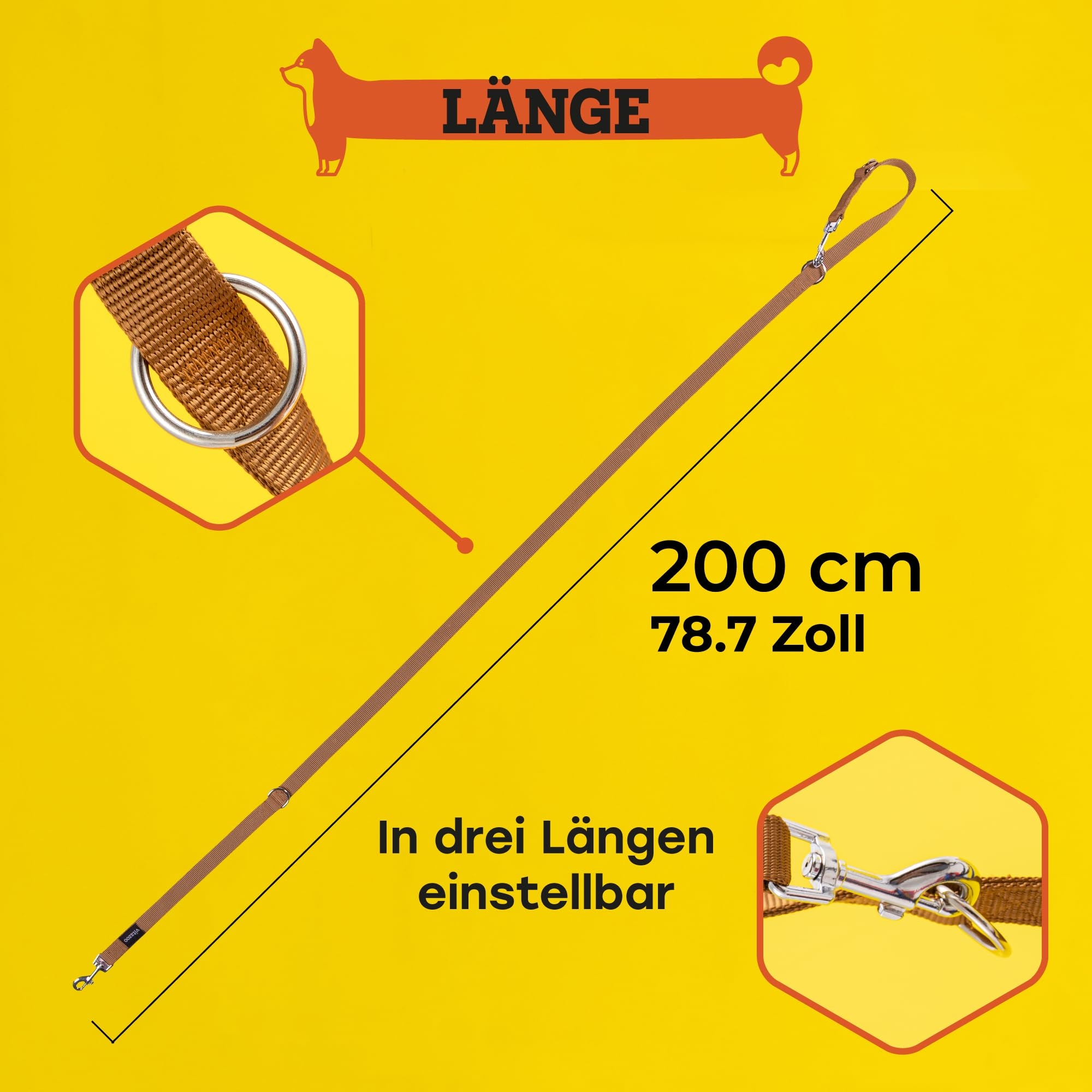 REGULOWANA W TRZECH DŁUGOŚCIACH: Dzięki trzem oczkom smycz dla psa jest regulowana w trzech długościach.