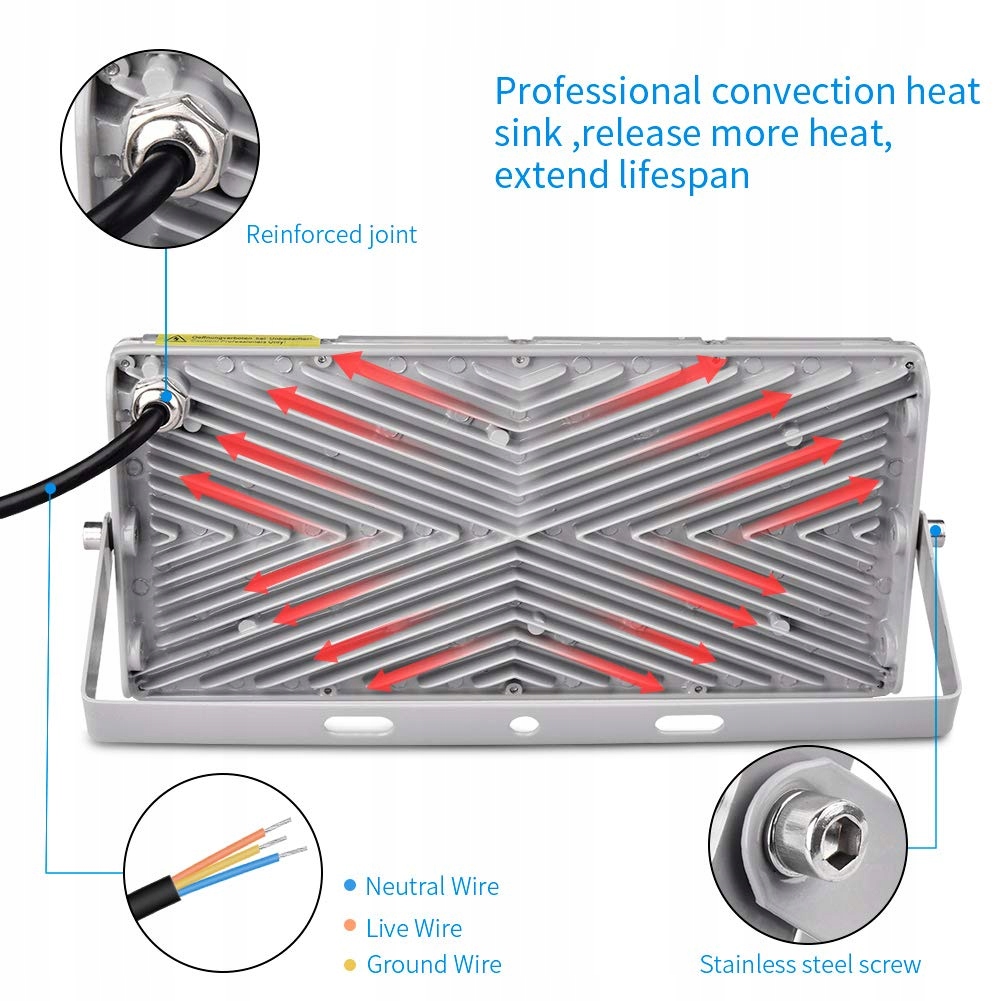 【WODOODPORNE OŚWIETLENIE ZEWNĘTRZNE IP66】Uszczelnienie produktu jest idealne. Reflektor może być używany zarówno wewnątrz, jak i na zewnątrz. Nadaje się do ogrodów, placów, billboardów, fabryk, hoteli, boisk do koszykówki i piłki nożnej, trybun, stadionów oraz innych miejsc wymagających oświetlenia.