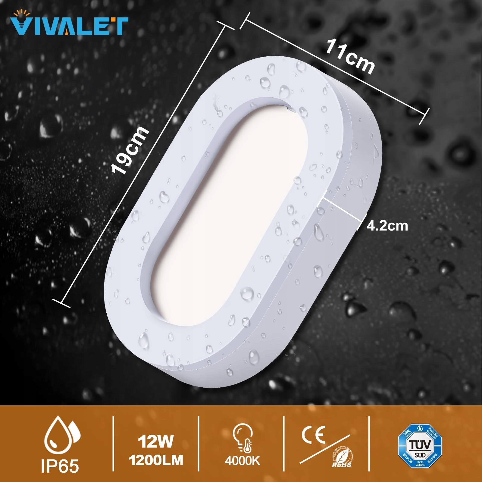 VIVALET Lampa LED 12W 1200LM IP65 Wodoodporna Do Piwnicy Kuchni Balkonu | Premium Supply