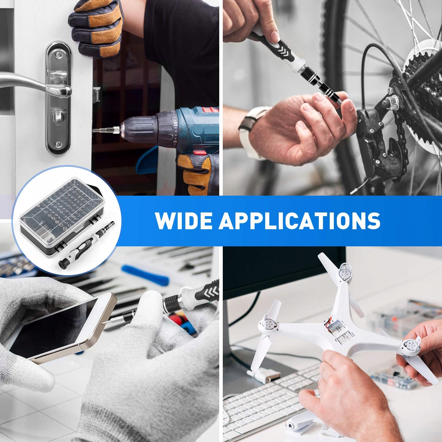 Uniwersalny zestaw wkrętaków: Ten magnetyczny zestaw narzędzi precyzyjnych może być używany do naprawy różnych urządzeń, takich jak sprzęt AGD (wentylator, lodówka, telewizor, pralka, klimatyzator, piekarnik itp.), urządzenia elektroniczne (telefon komórkowy, laptop itp.), komputer, kamera, konsola do gier Nintendo, zegarek itp.), małe przedmioty (okulary, zegarek, zabawki itp.).