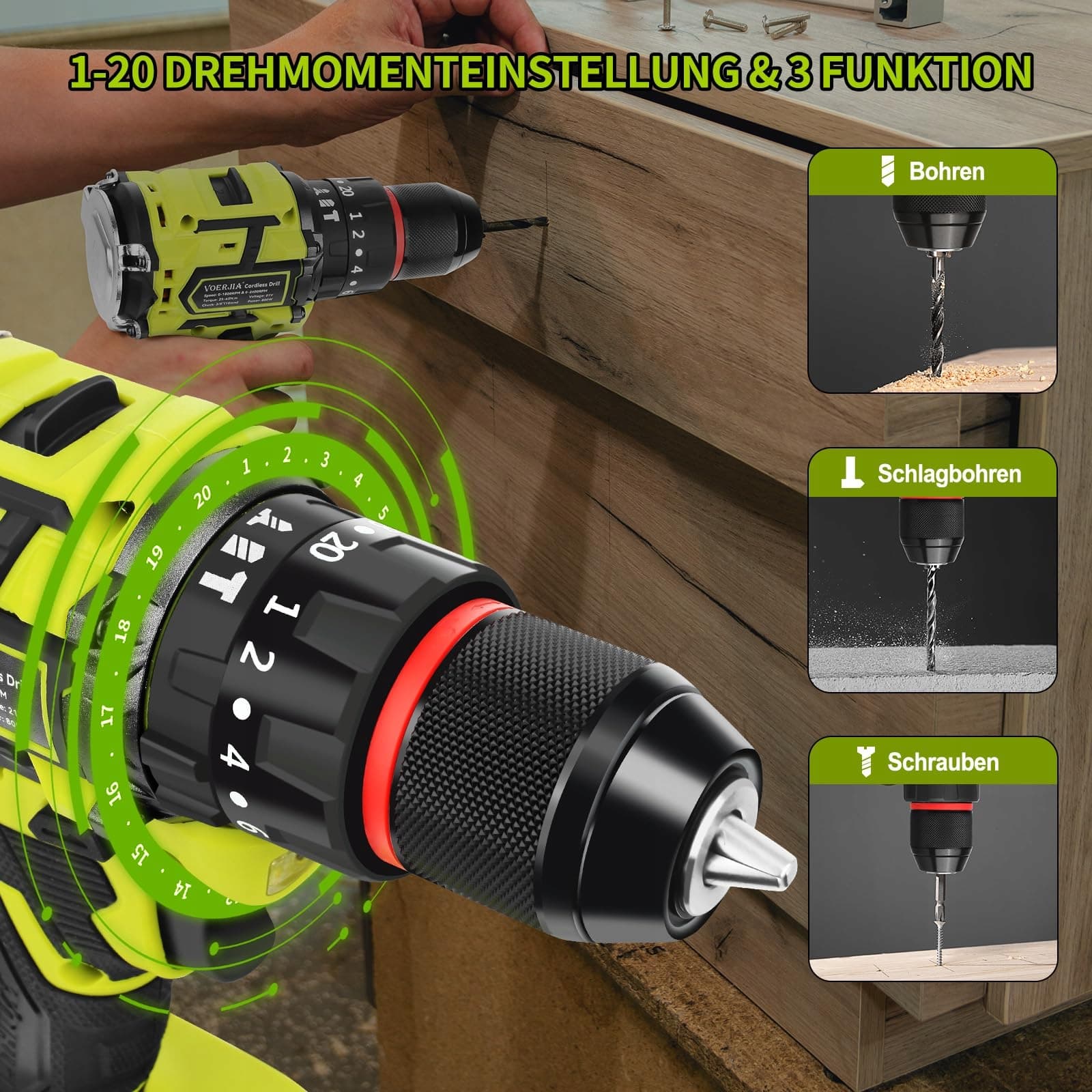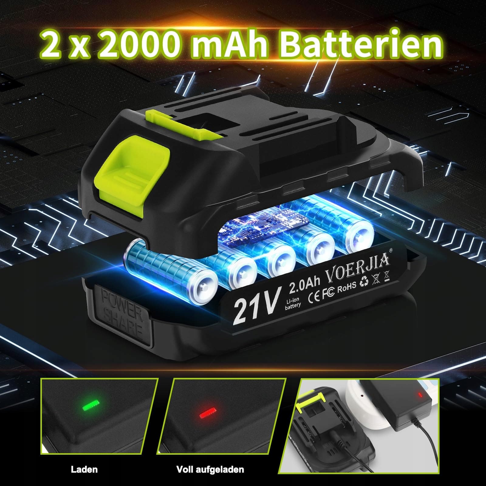VOERJIA 21V Bezszczotkowa Wkrętarka Akumulatorowa z Akcesoriami