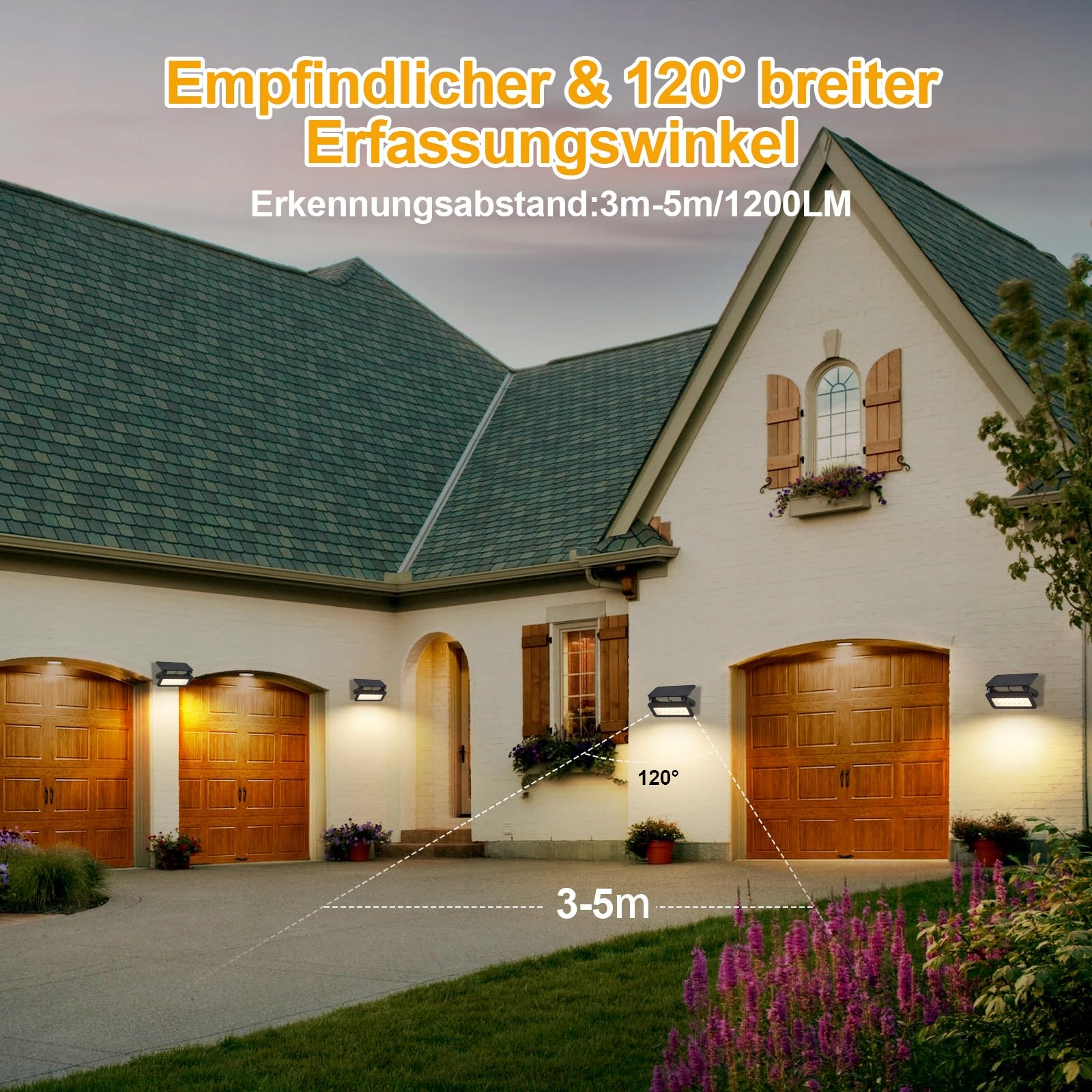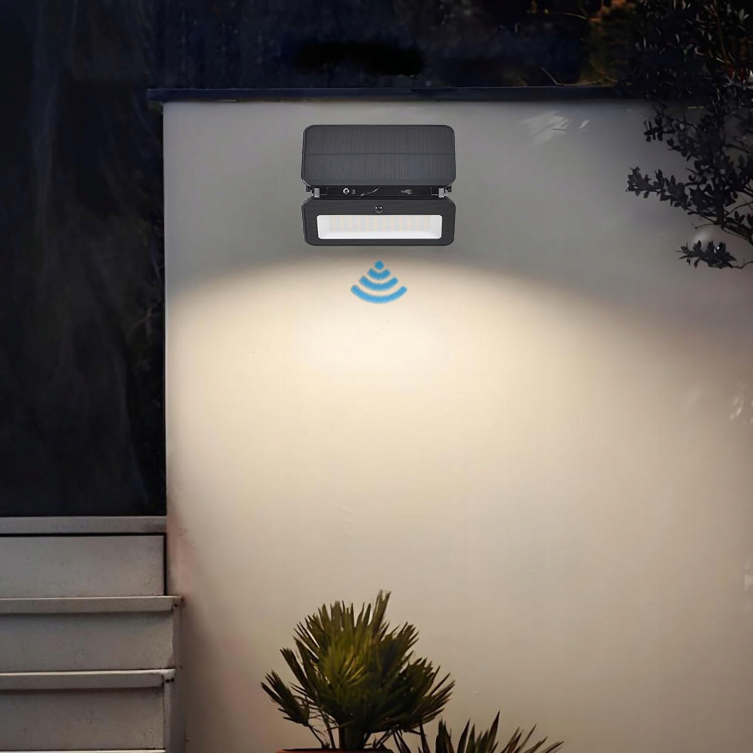 1. Inteligentny zewnętrzny czujnik ruchu solarny: Nasza lampa solarna z czujnikiem ruchu włącza się automatycznie przy ruchu (zasięg 3-5m, kąt 120°). Idealna jako bezpieczne oświetlenie schodów, podjazdu do garażu lub ścieżek w ogrodzie. Czujnik ruchu solarny oszczędza energię dzięki oświetleniu na żądanie. Idealna jako lampy solarne na zewnątrz na ścianę.