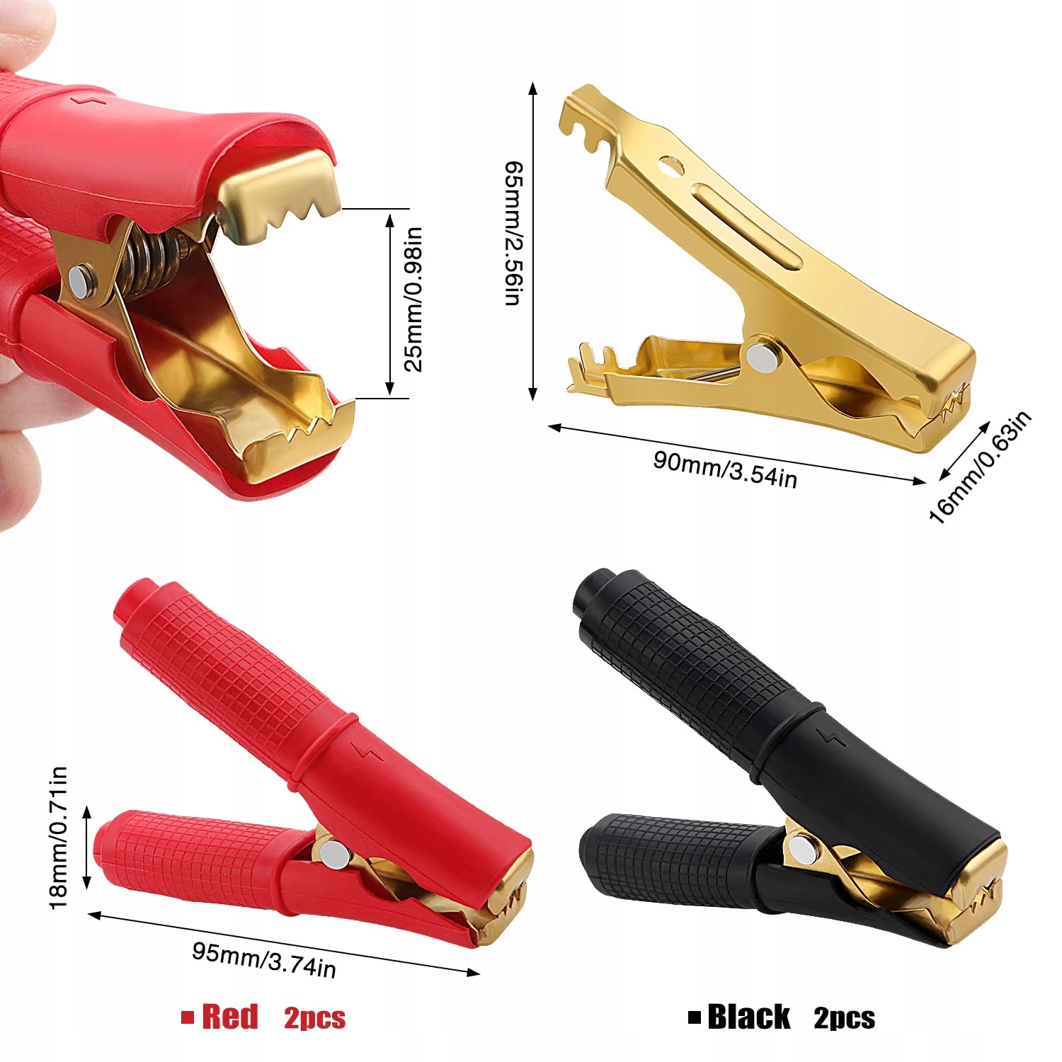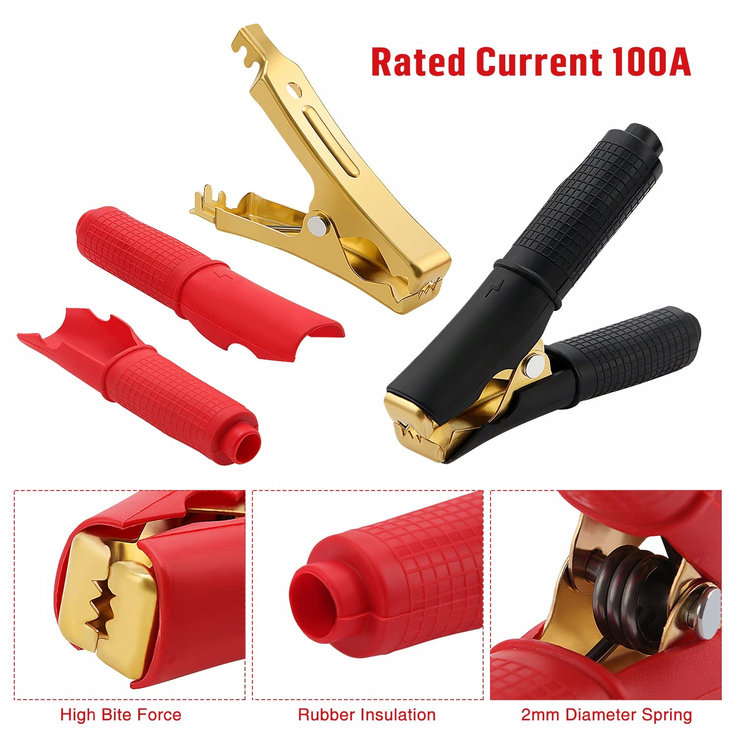 Łatwe do połączenia: czarny i czerwony pasujący, łatwe do rozróżnienia biegun dodatni i ujemny, zygzakowaty design krokodyla, silna siła zacisku i duży rozmiar otwarcia.