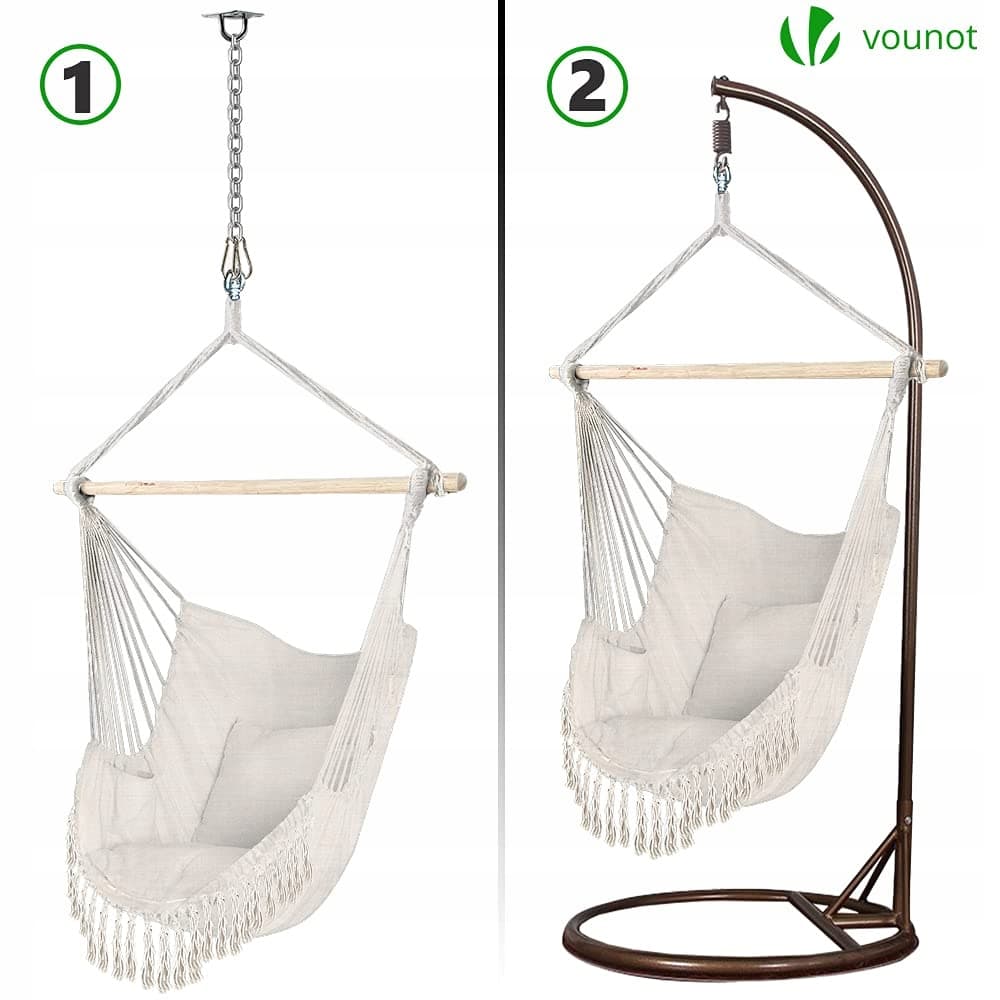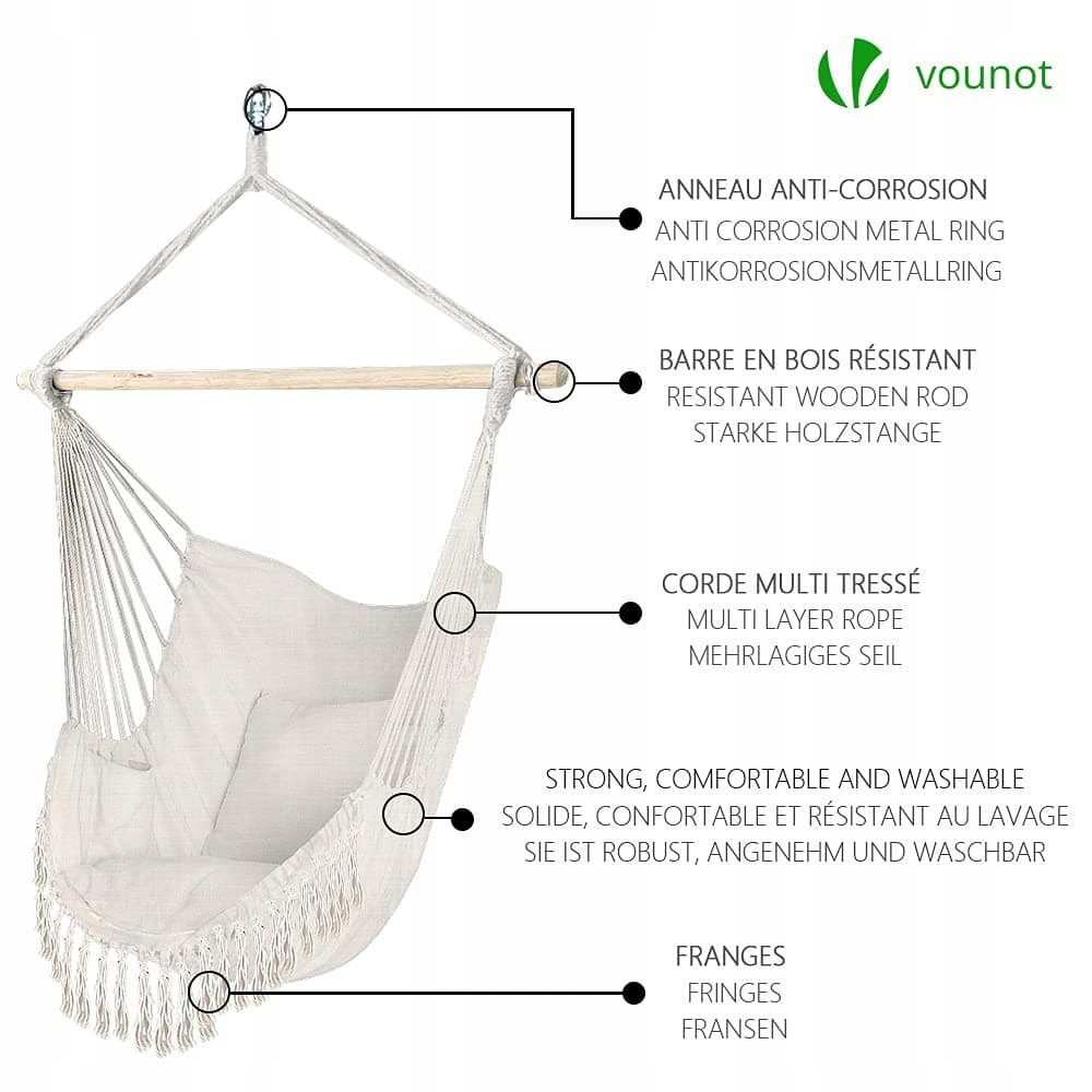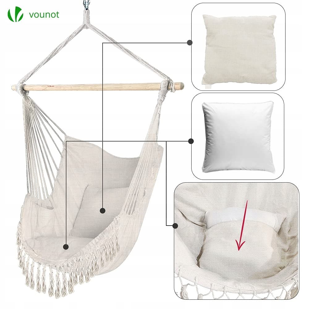 VOUNOT Fotel Wiszący XXL Z Poduszkami Do Wnętrz I Ogrodu Beżowy