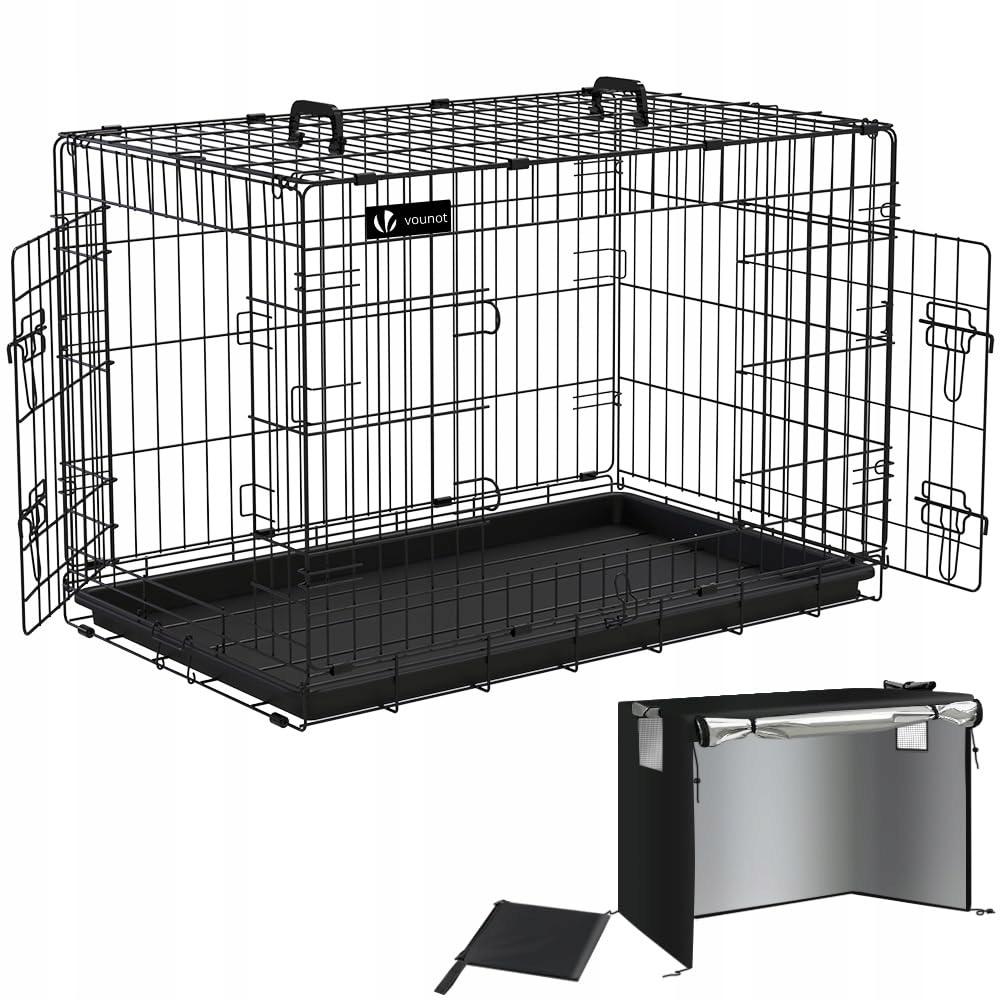 VOUNOT Składana Klatka Dla Psa z Pokrywą i Podwójnymi Drzwiami Czarna