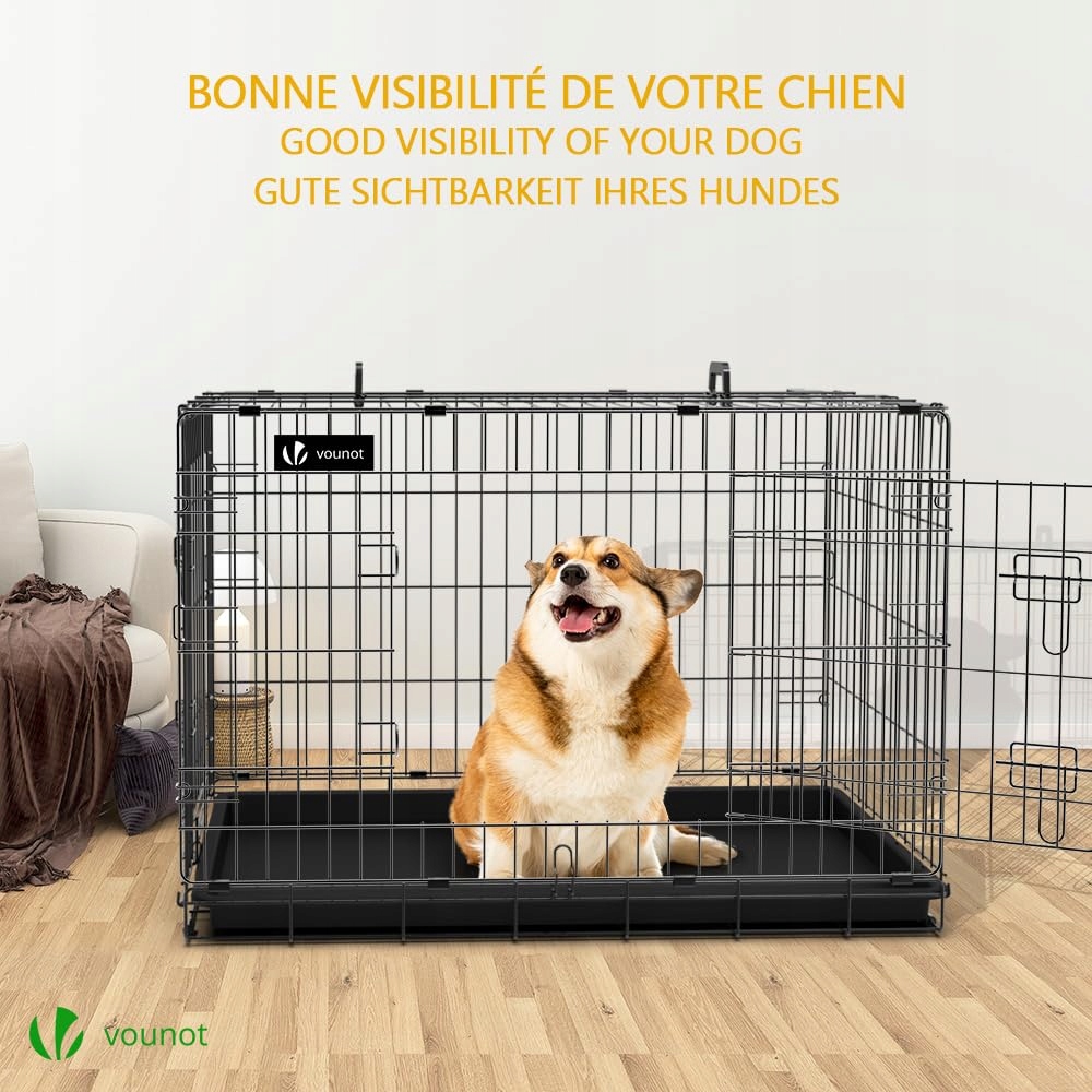 [Podwójne drzwi i zamki, podwójne bezpieczeństwo] Dwoje drzwi tej klatki dla psa umożliwia Twojemu zwierzakowi wybór wygodnego wejścia. Podwójne zamki w kształcie litery L są trudne do otwarcia przez Twojego czworonożnego przyjaciela.