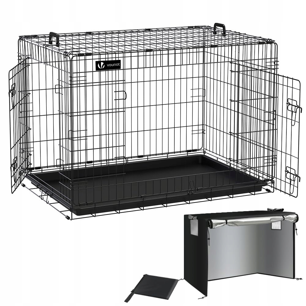 VOUNOT Składana Klatka Dla Psa z Pokrywą i Podwójnymi Drzwiami XL Czarna