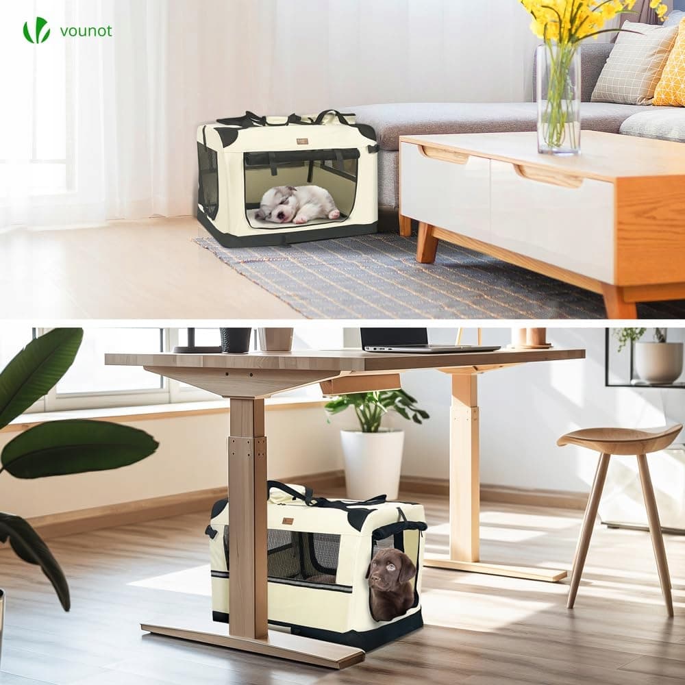 VOUNOT Składana klatka dla psa, Transporter dla kota i psa, Torba dla psa, Tkanina Oxford, Siatka, Oddychająca, Przenośna, Metalowa rama, z uchwytami, Kieszeniami, 60x44x44cm M, Beżowa