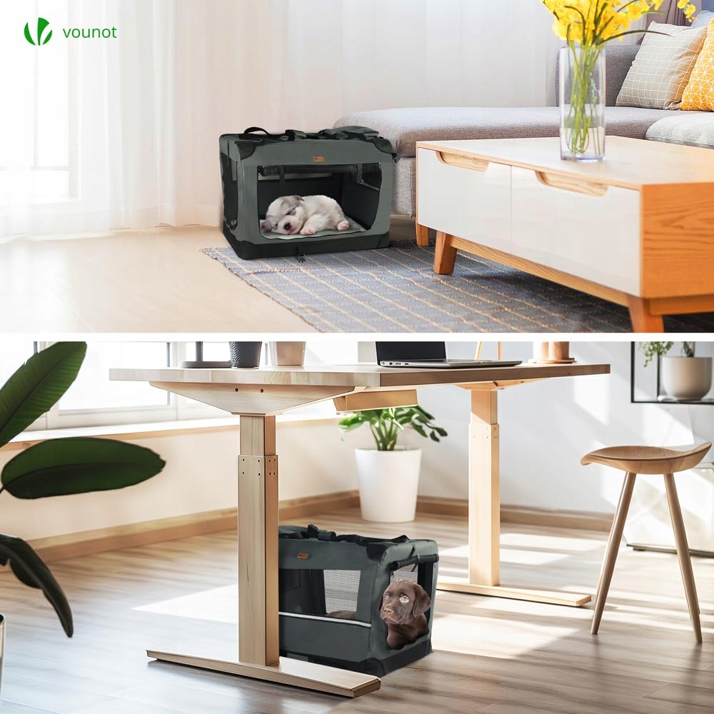 VOUNOT składana klatka dla psa, transporter dla kota i psa, torba dla psa, tkanina Oxford, siatka, oddychająca, przenośna, metalowa rama, z uchwytami, kieszeniami, 50x35x36 cm S, szara