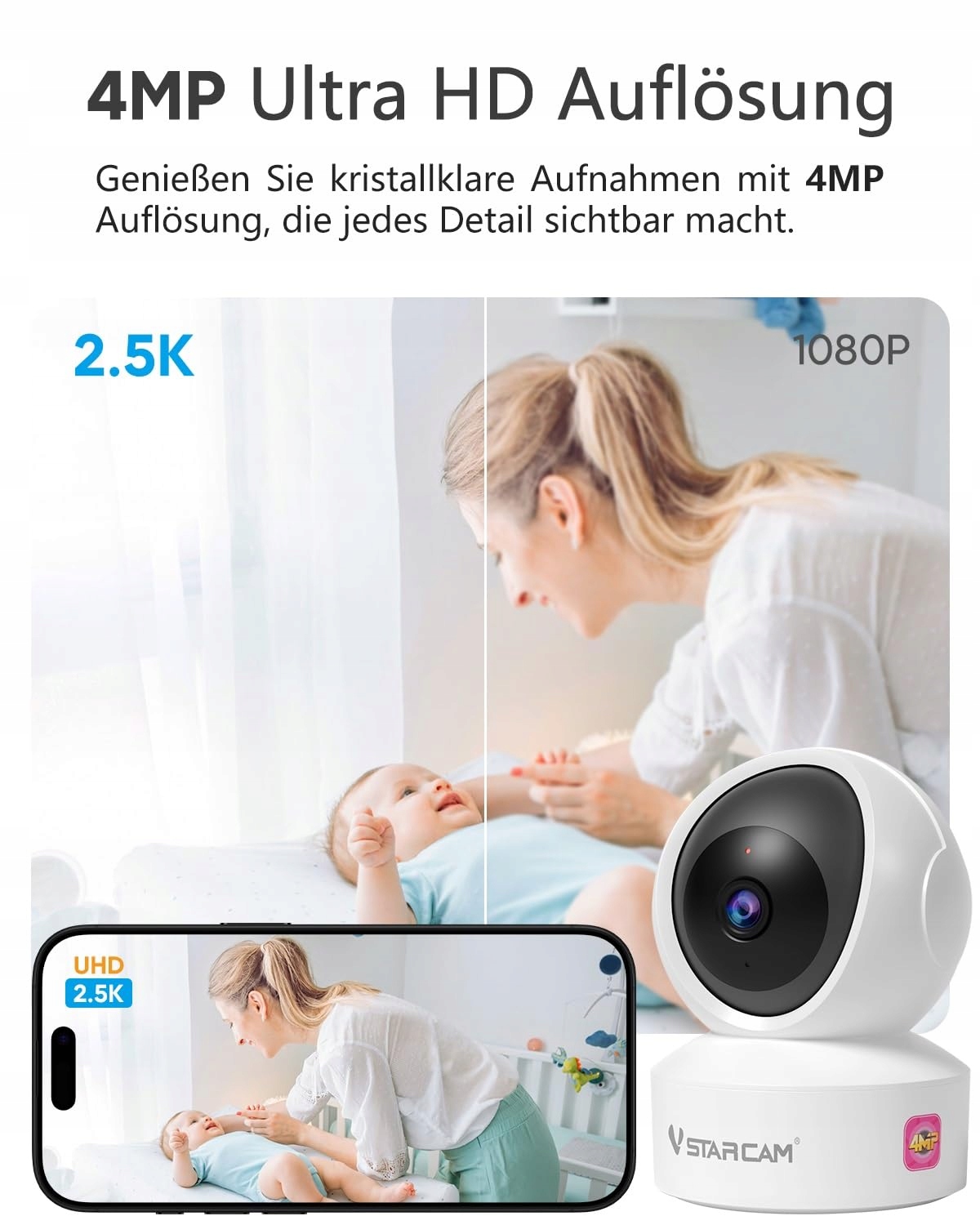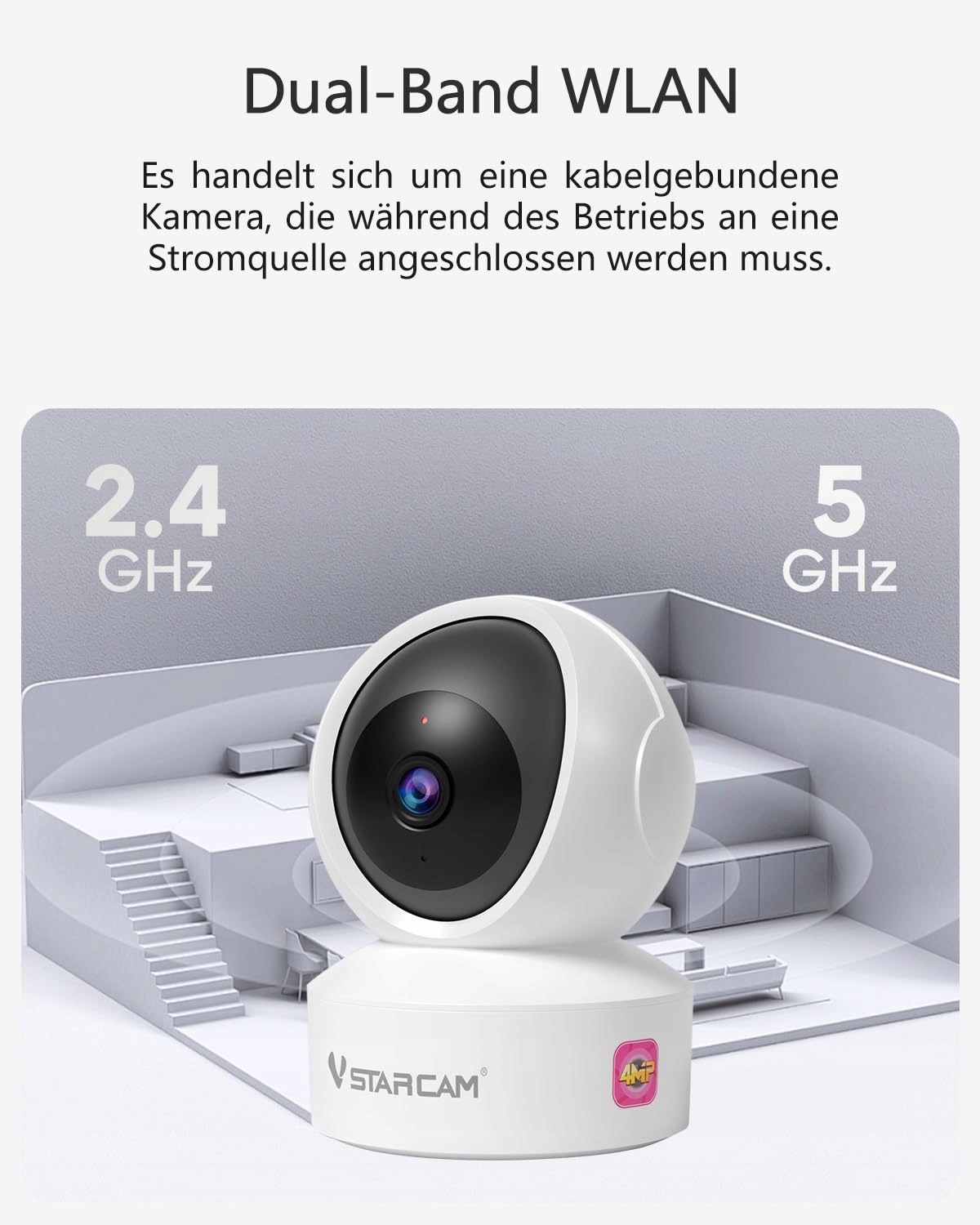 VSTARCAM 5G Kamera do monitoringu wewnętrznego - 2K QHD, 360° Dual-Band WLAN Kamera wewnętrzna dla psa z aplikacją, automatyczne śledzenie, dwukierunkowe audio, wykrywanie ruchu, kolorowe widzenie nocne do 9 m, do 256 GB pamięci1