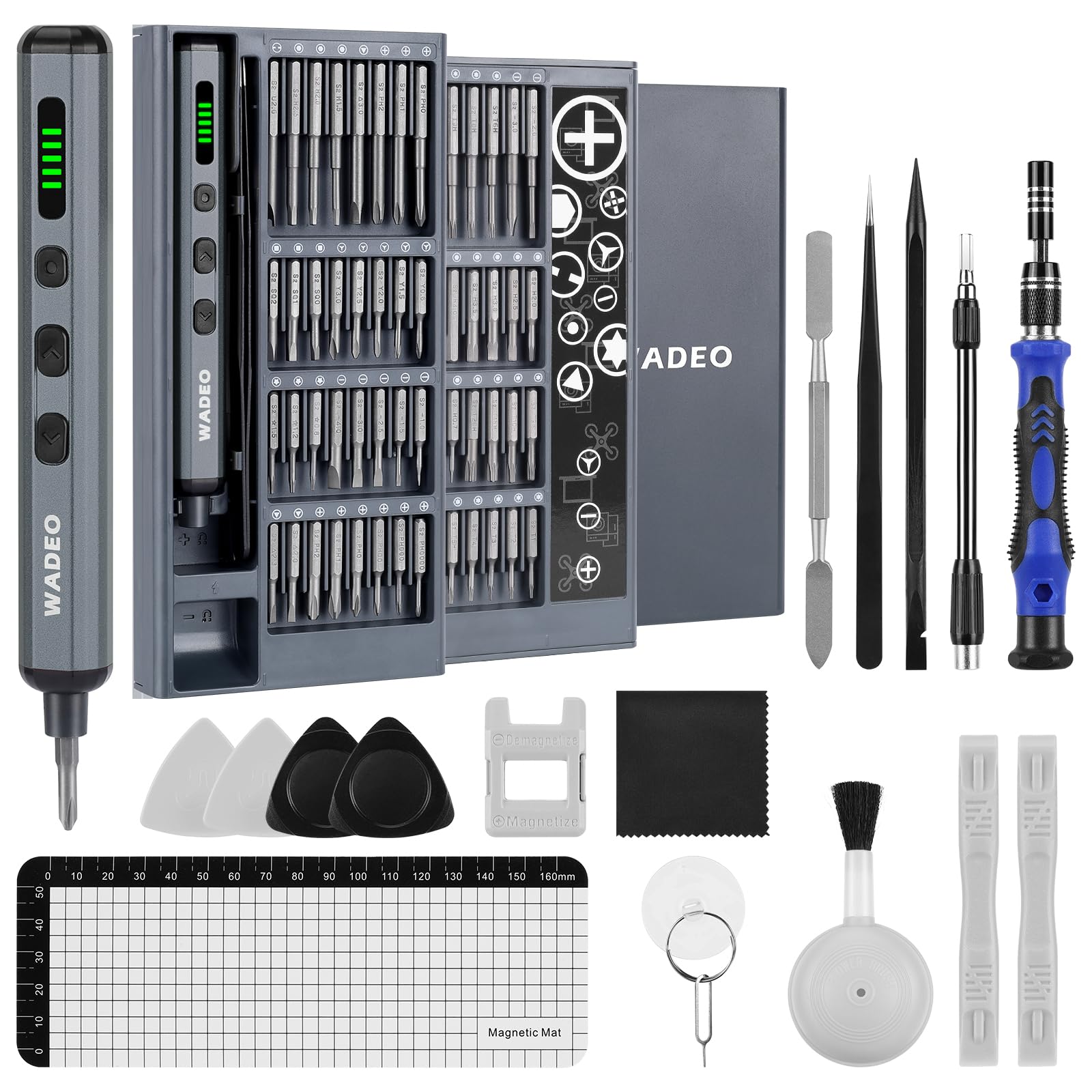 Zestaw mini wkrętarek elektrycznych WADEO, 82 w 1 Zestaw precyzyjnych wkrętaków magnetycznych, 5 biegów momentu obrotowego, 4 diody LED, odpowiedni do naprawy iPhone'a, telefonów komórkowych, laptopów, okularów, zegarków itp.