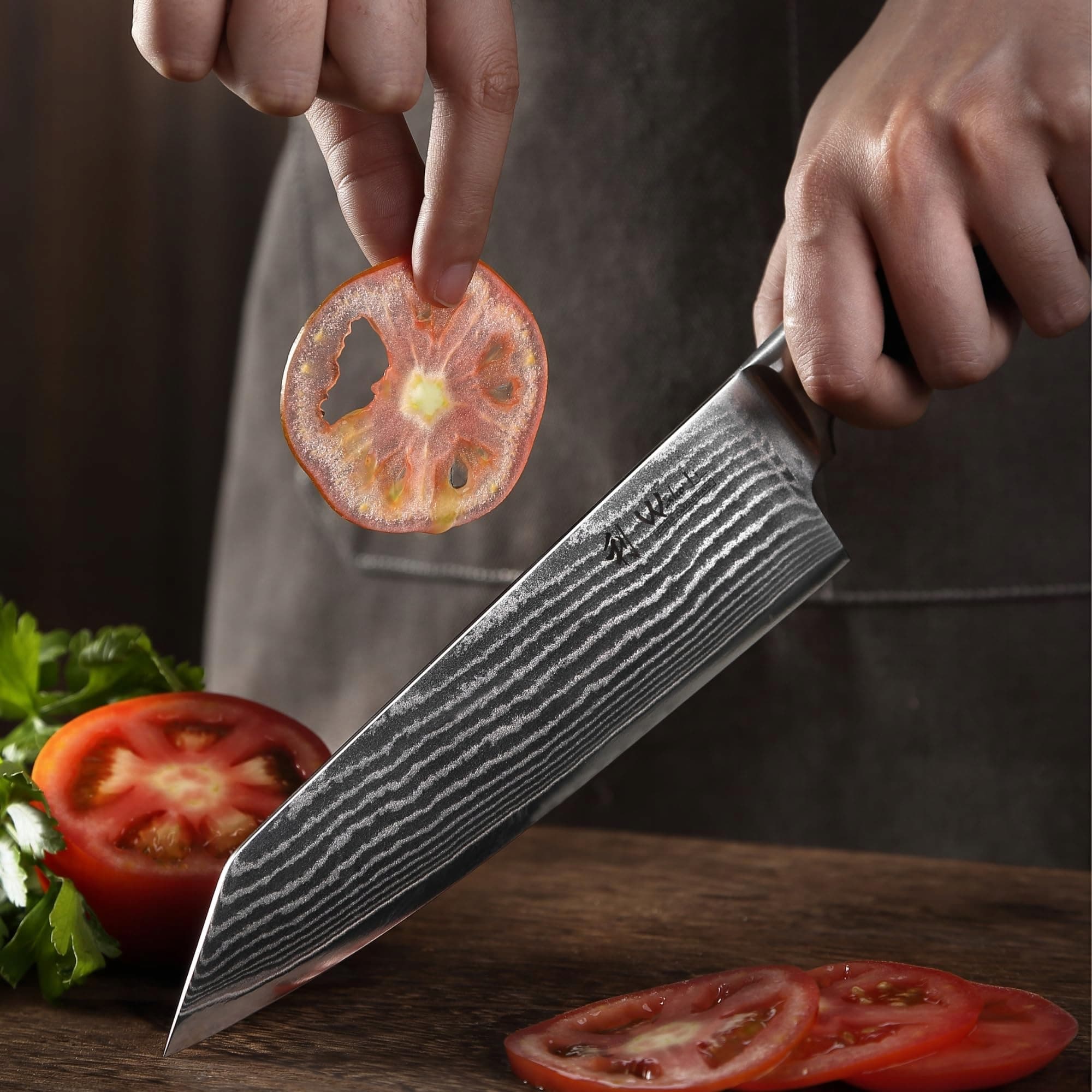 🔪 OSTRE JAK ŻYLETKA - Dzięki rdzeniowi tnącemu VG10 osiągnięto twardość ostrza na poziomie 60±2 HRC. Dzięki specjalnemu hartowaniu ostrzy w temperaturze powyżej 800° C oraz obróbce w zimnie z użyciem ciekłego azotu w -150°C uzyskuje się maksimum z wysokiej jakości stali ostrzowej. Te noże są ręcznie szlifowane i polerowane, aby osiągnąć optymalną wydajność cięcia. Dzięki temu ten wysokiej jakości nóż kuchenny jest szczególnie ostry i długo pozostaje taki.