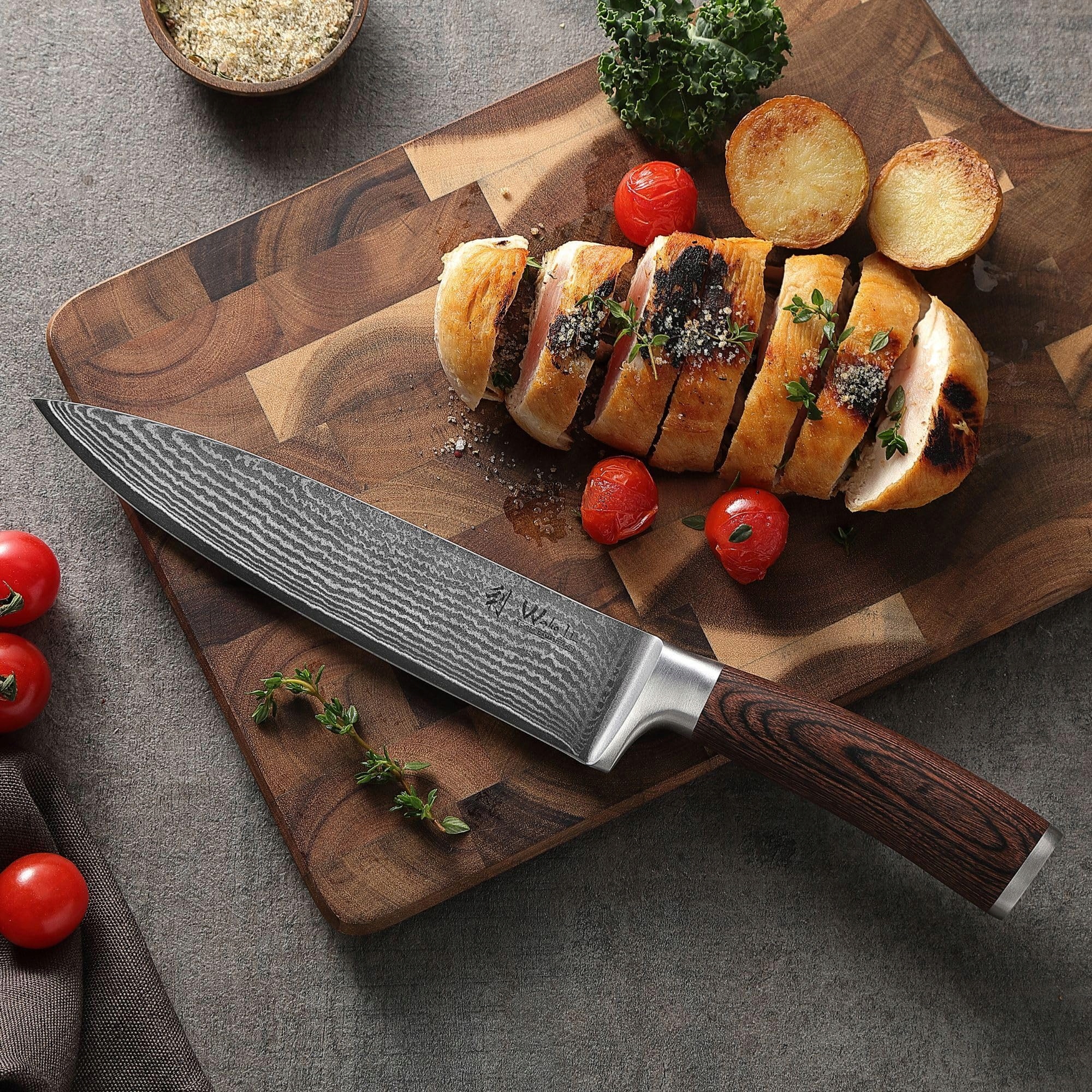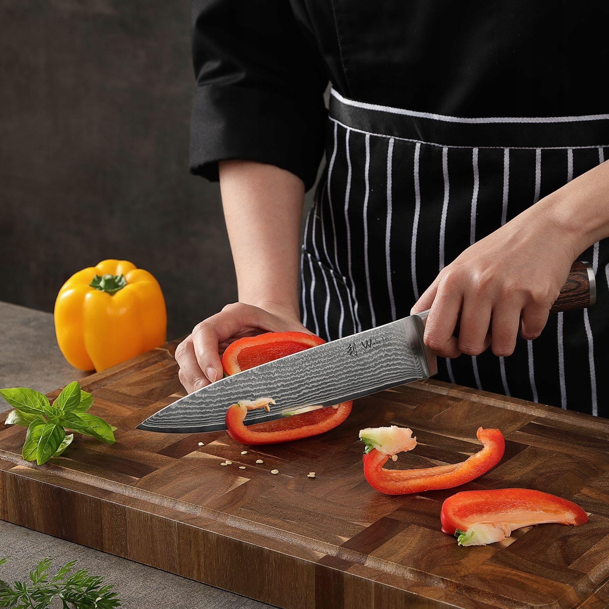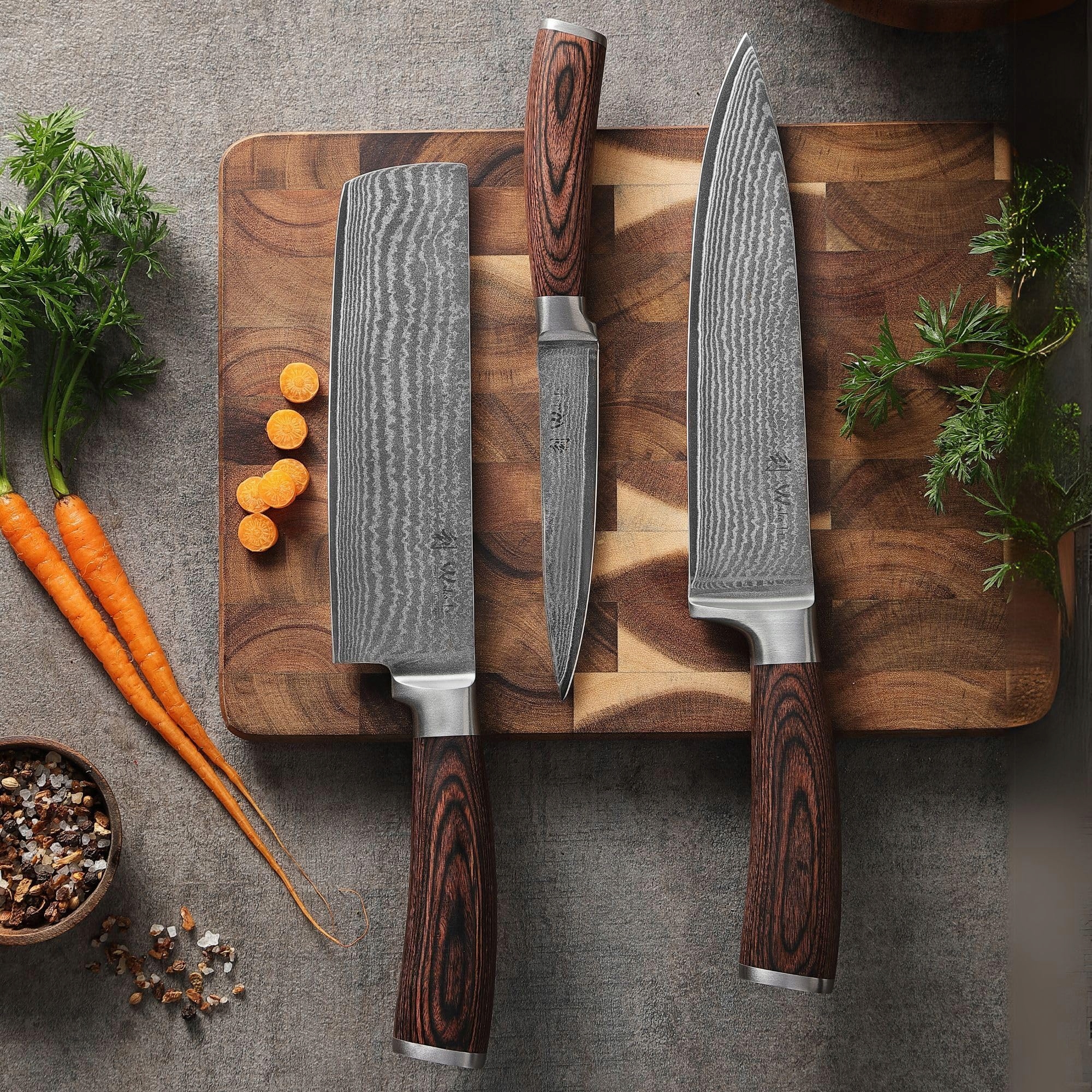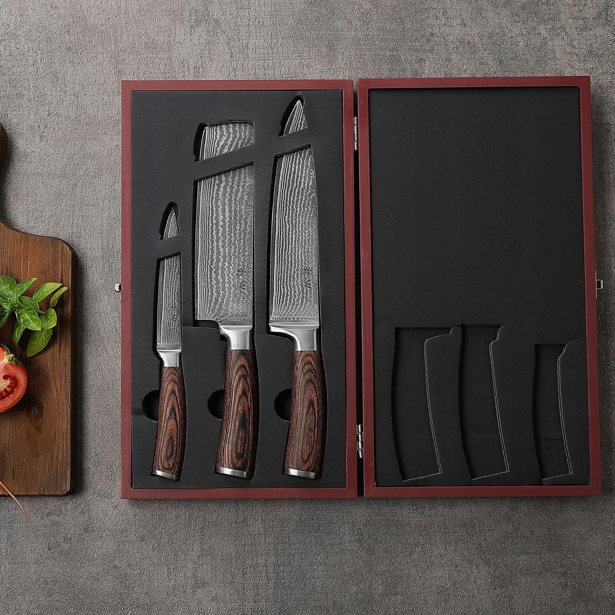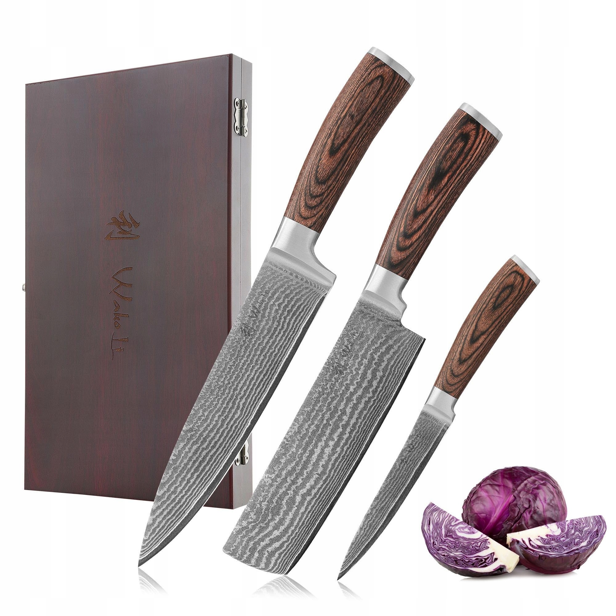 WAKOLI Zestaw Noży Damast 3 Sztuki Noże Kuchenne VG10 Pakkaholz