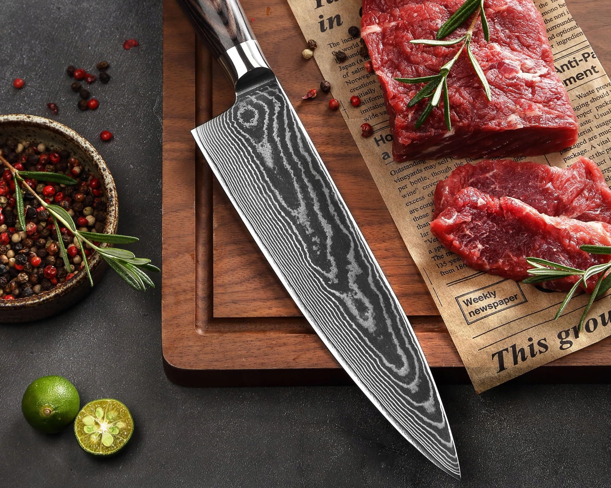 🔪KAŻDY NÓŻ JEDYNY W SWOIM RODZAJU: Indywidualna struktura stali damasceńskiej sprawia, że każdy nóż jest unikatowy. Bądź gwiazdą w swojej kuchni, niezależnie od tego, czy gotujesz dla przyjaciół i rodziny, czy tylko dla siebie. Nigdy gotowanie nie było tak proste.