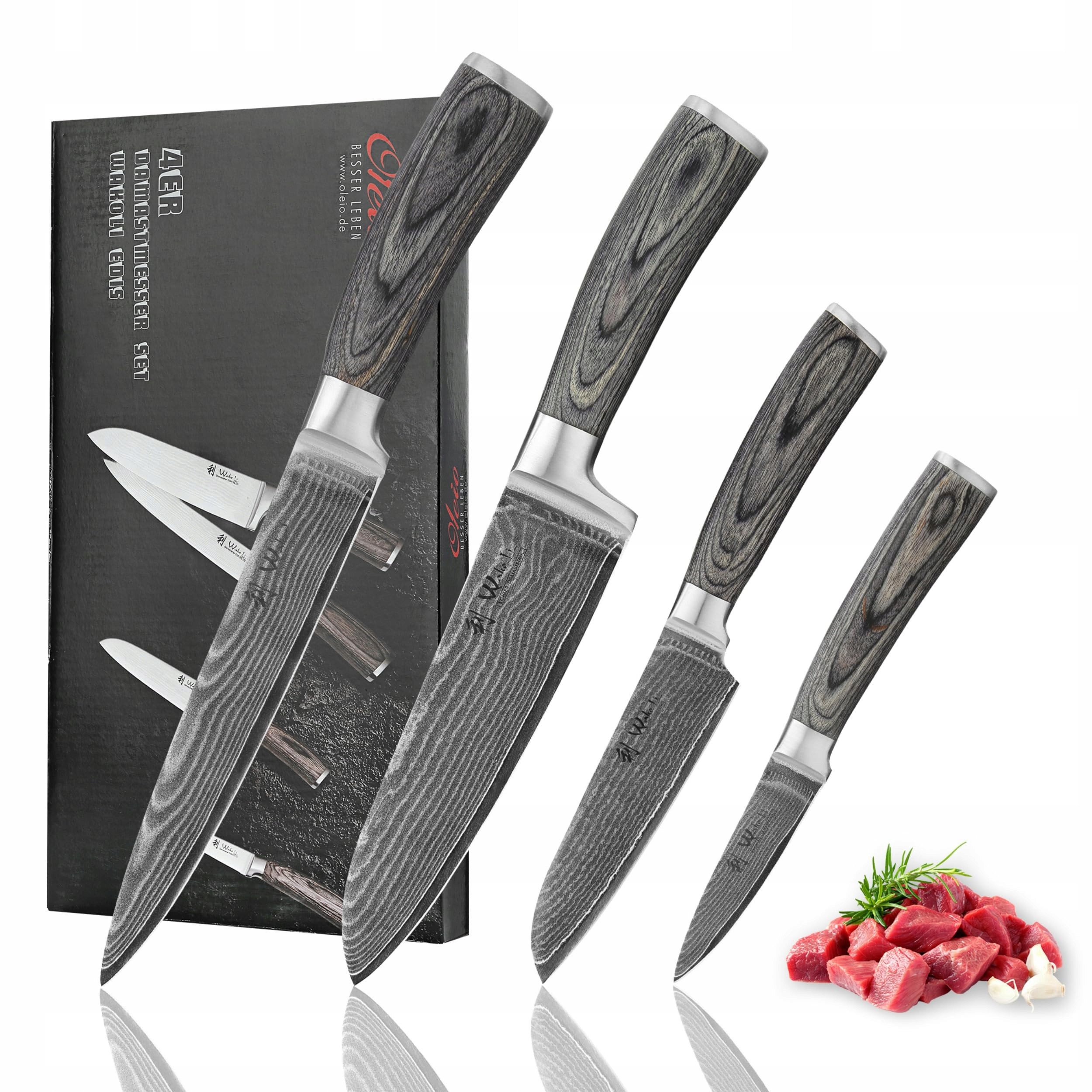 WAKOLI Zestaw Noży Kuchennych Damast VG10 4 Sztuki z Pakkaholzu