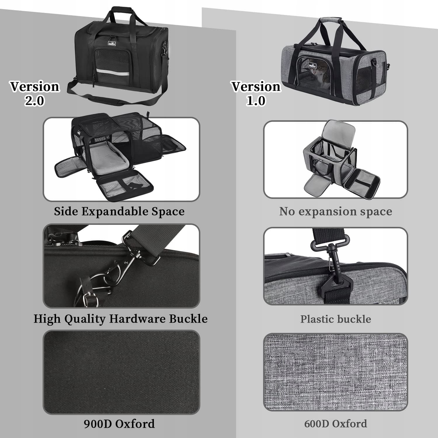 🐶[3 WEJŚCIA & 5 BOCZNYCH OTWORÓW WENTYLACYJNYCH]: Konstrukcja zamków błyskawicznych na górnych, przednich i bocznych wejściach torby ułatwia wkładanie i noszenie zwierzęcia, co sprawia, że szybciej i łatwiej można wyjąć zwierzę z transportera podczas kontroli bezpieczeństwa. 5 oddychających okien z siatki zostało zaprojektowanych w celu poprawy widoczności i wentylacji, co pozwala im czuć się zrelaksowanymi i spokojnymi.