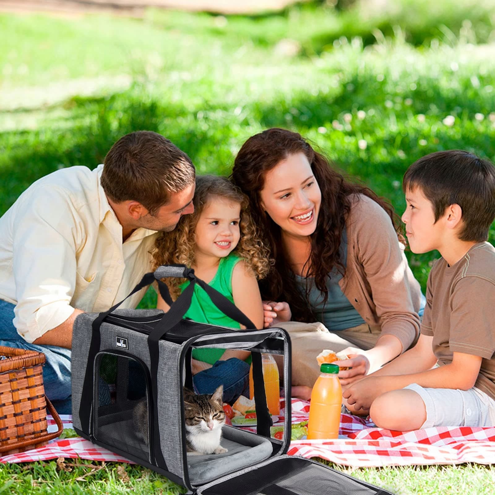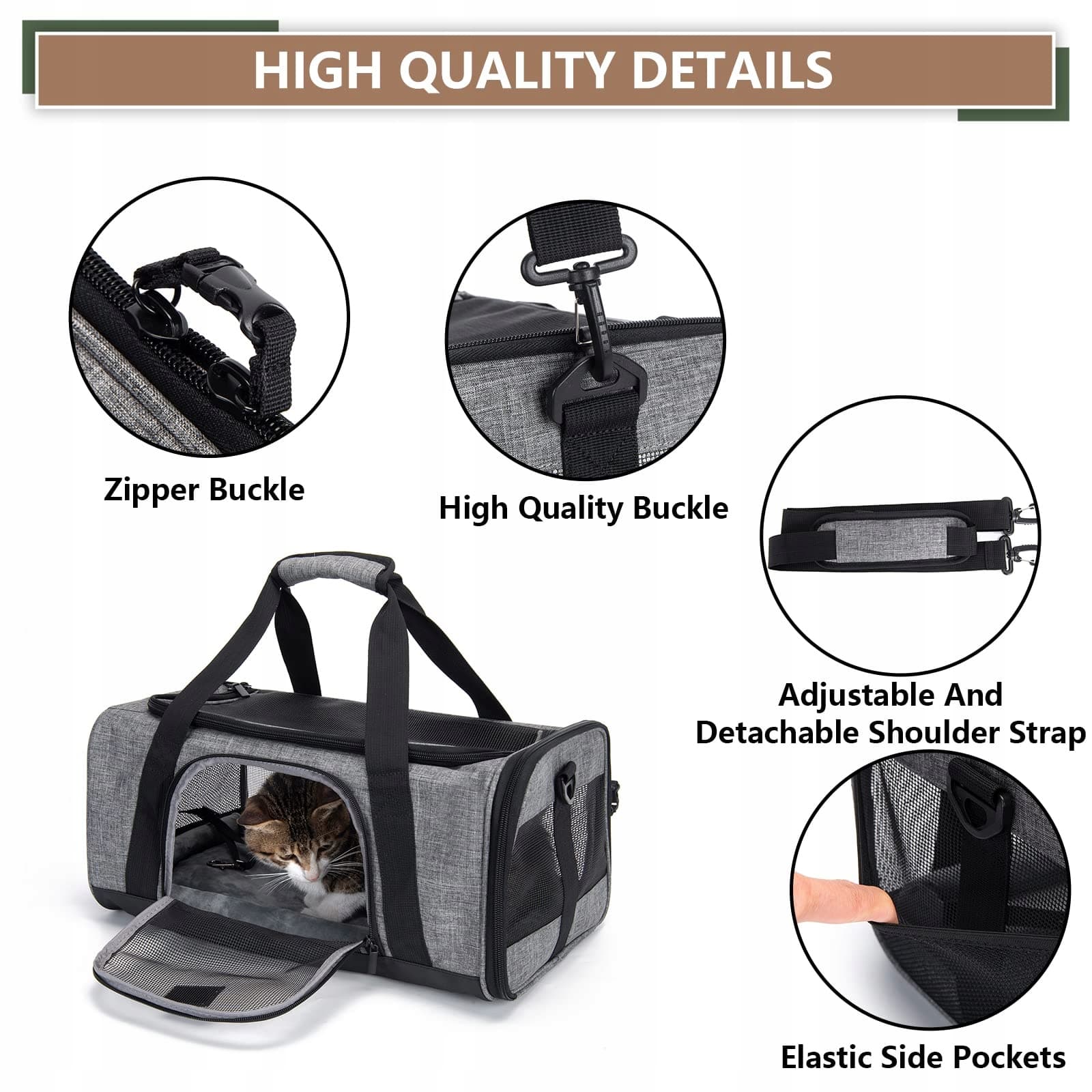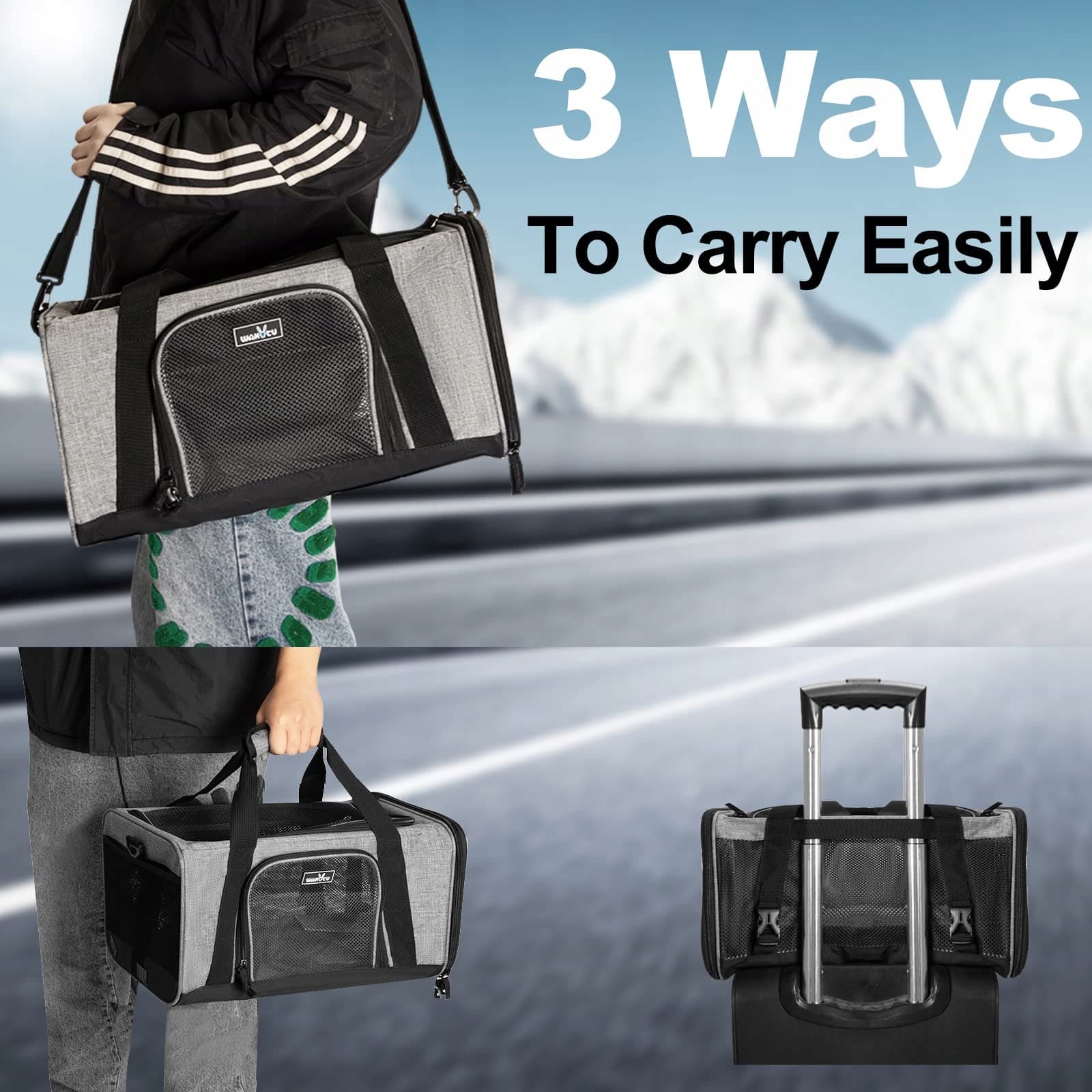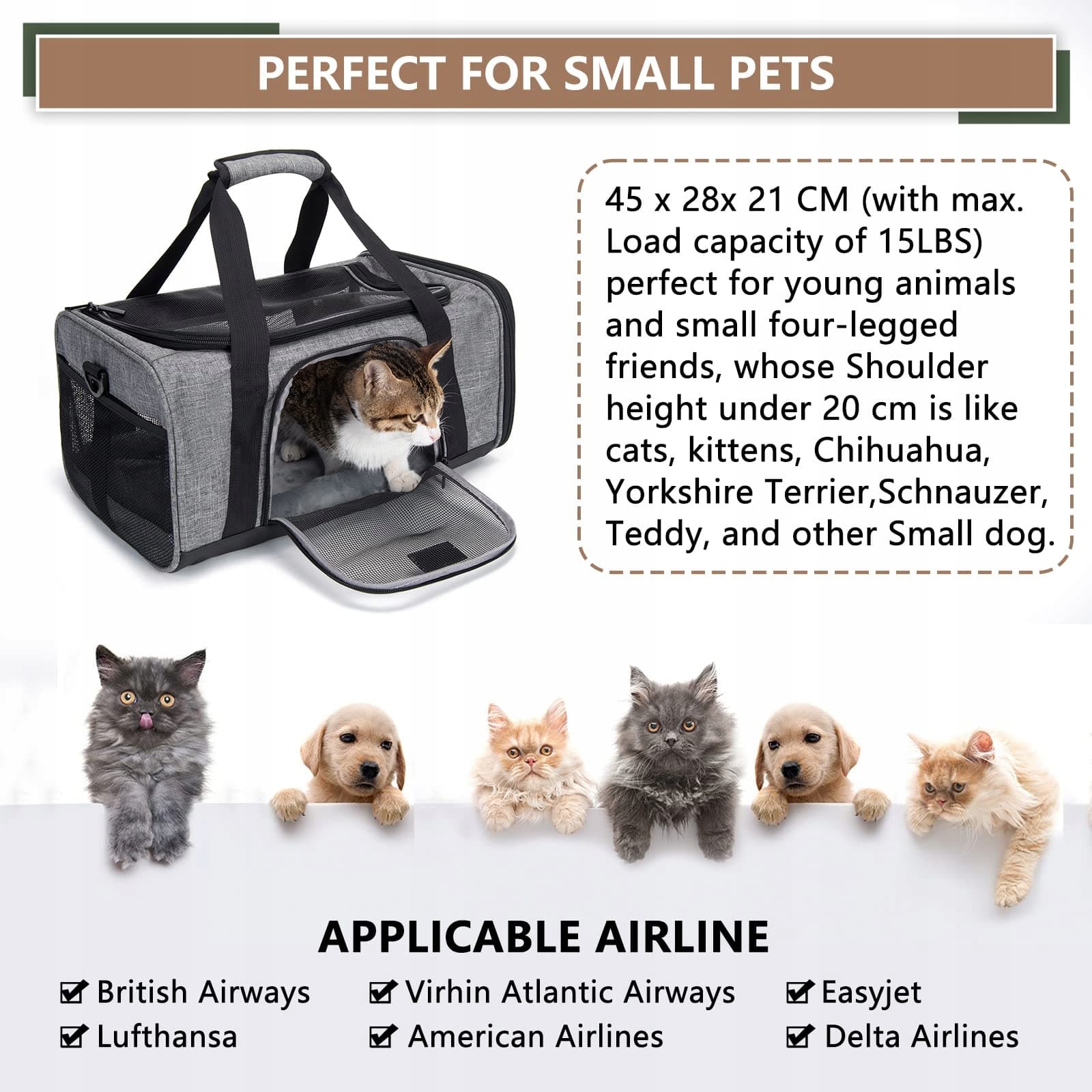 Wakytu Torba Podróżna do Samolotu Transporter dla Kota Psa Torba Transportowa dla Zwierząt Składany Transporter dla Psów Transporter dla Kotów Torba na Psa Transporter do Samochodu Oddychająca Torba na Psa Szara