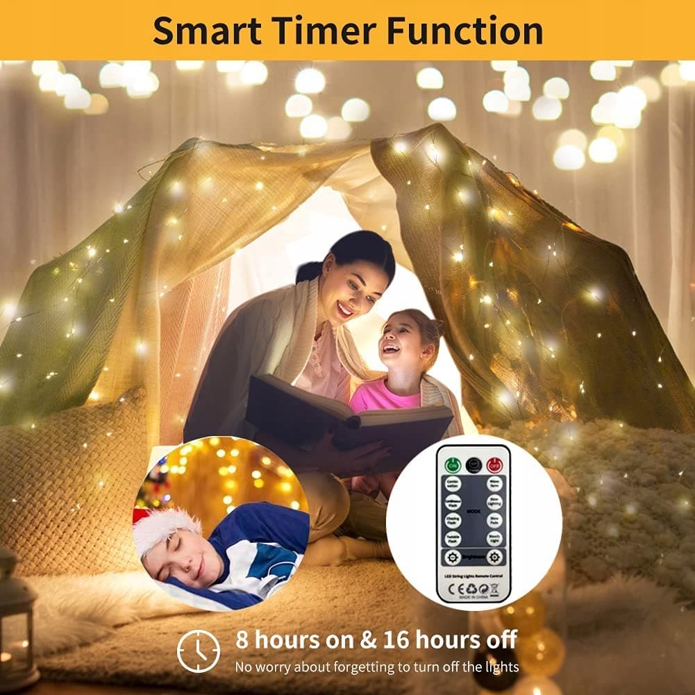 [Funkcja timera]LED lichterkette na zewnątrz ma funkcję timera, Gdy naciśniesz przycisk 'TIMER' na pilocie, światło będzie świecić przez 6 godzin i wyłączy się na 18 godzin. LED Lichtervorhang mają również funkcję pamięci, która po ponownym uruchomieniu może przywrócić poprzedni tryb ustawień
