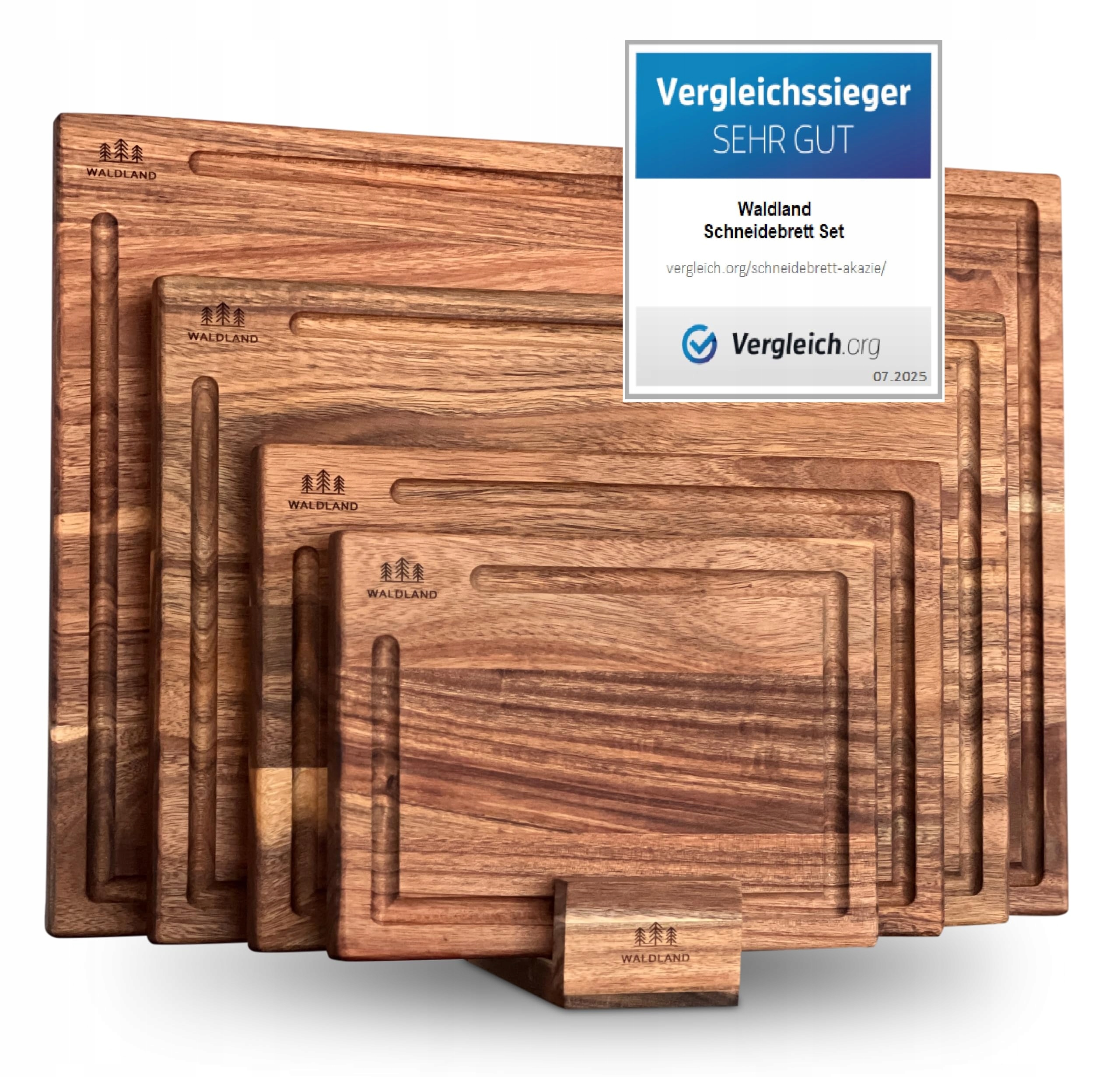 WALDLAND Premium deska do krojenia drewno zestaw 4 szt. (40x30, 33x24, 27x18, 21x15) I w zestawie stojak na deski I deska kuchenna I zestaw desek do krojenia z wytrzymałego drewna akacjowego