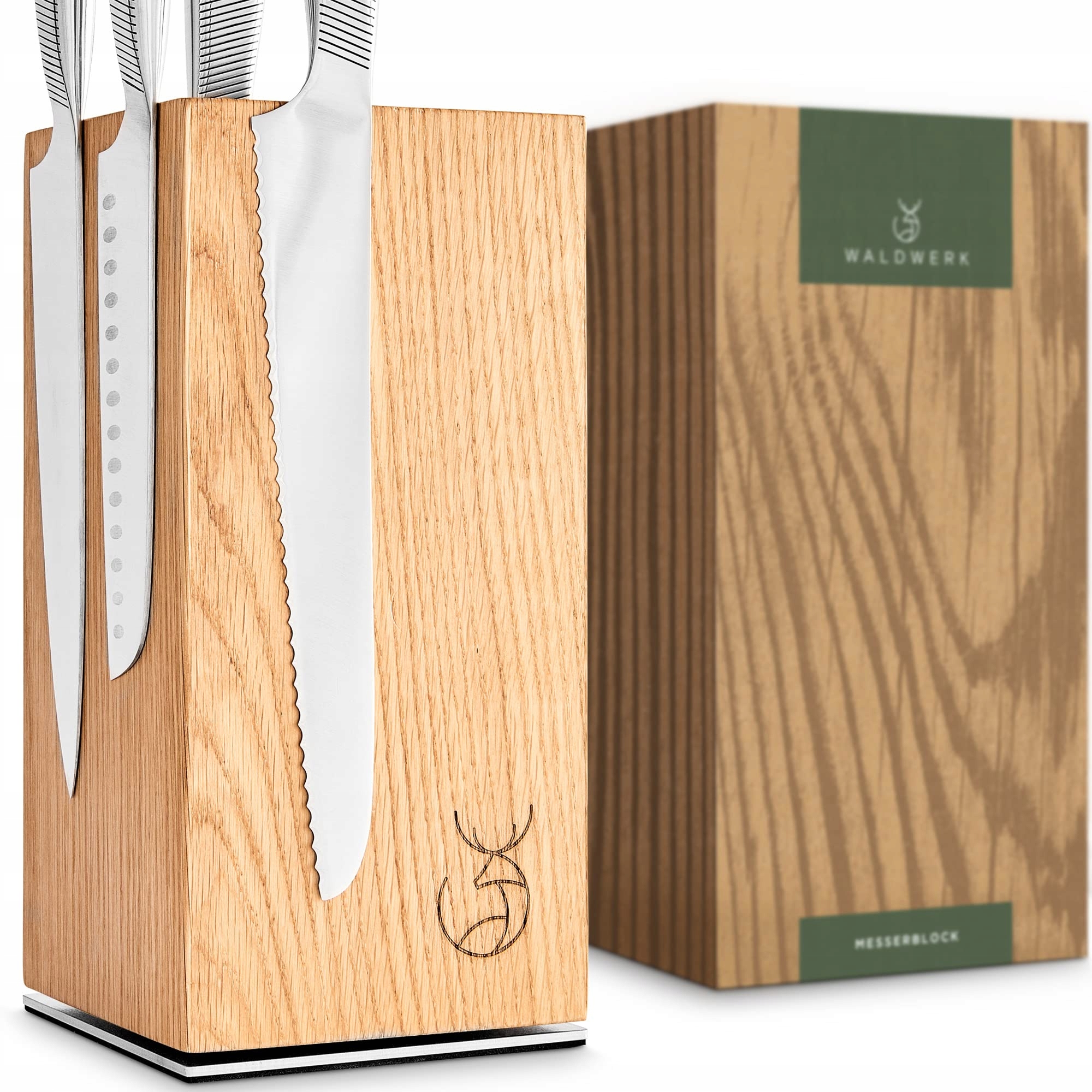 WALDWERK blok na noże bez noży – magnetyczny i obrotowy blok na noże z szlachetnego dębowego drewna – uchwyt na noże