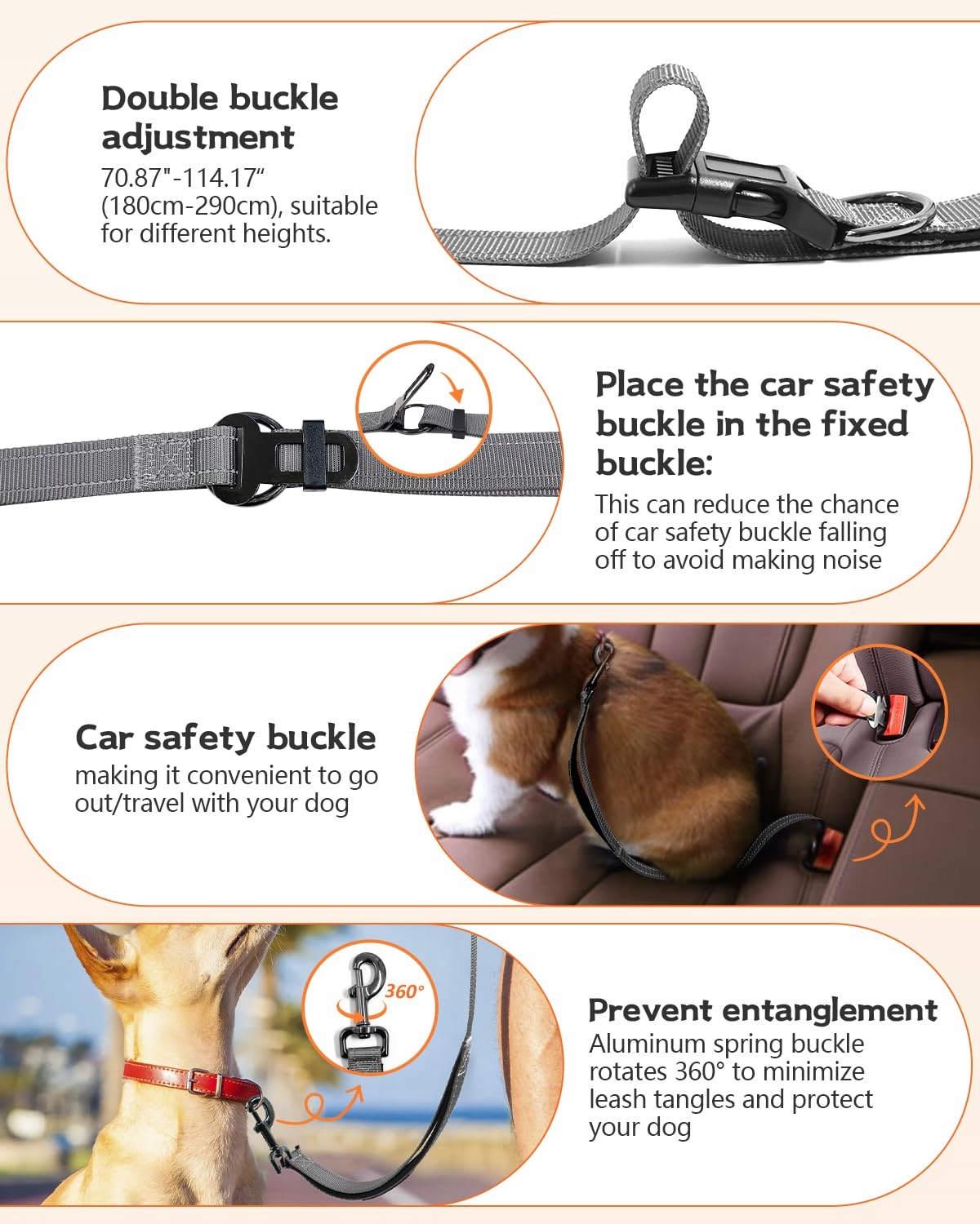 🐕🦺ŁATWA DO DOSTOSOWANIA DO IDEALNEJ DŁUGOŚCI: Smycz dla psa oferuje zakres regulacji od 180 do 290 cm. Poprzez regulację długości smycz może być używana jako pasek na ramię, pas biodrowy, zawieszenie na ramię, a nawet do przymocowania do roweru. Dzięki swojej dużej długości nadaje się dla osób o różnym wzroście i wadze, poprawiając różnorodność interakcji między Tobą a Twoim zwierzakiem.