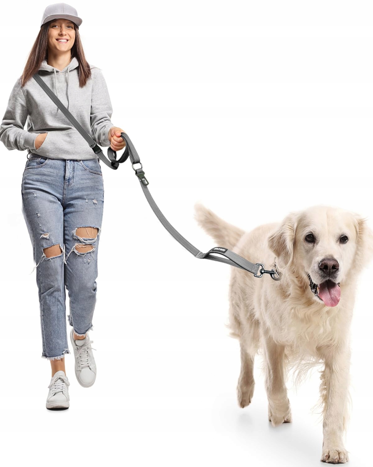 🐕🦺PRAKTYCZNY DESIGN, RELAKS I CZYSTOŚĆ: Dzięki smyczy masz wolne ręce, co pozwala na rozmowy telefoniczne, bieganie, korzystanie z telefonu, noszenie toreb z zakupami itp. Na wysokowytrzymałej klamrze D z cynkowego stopu na pasie można zawiesić klucze, woreczki na odchody itp., co ułatwia i higienizuje wyjścia z Twoim futrzanym przyjacielem.