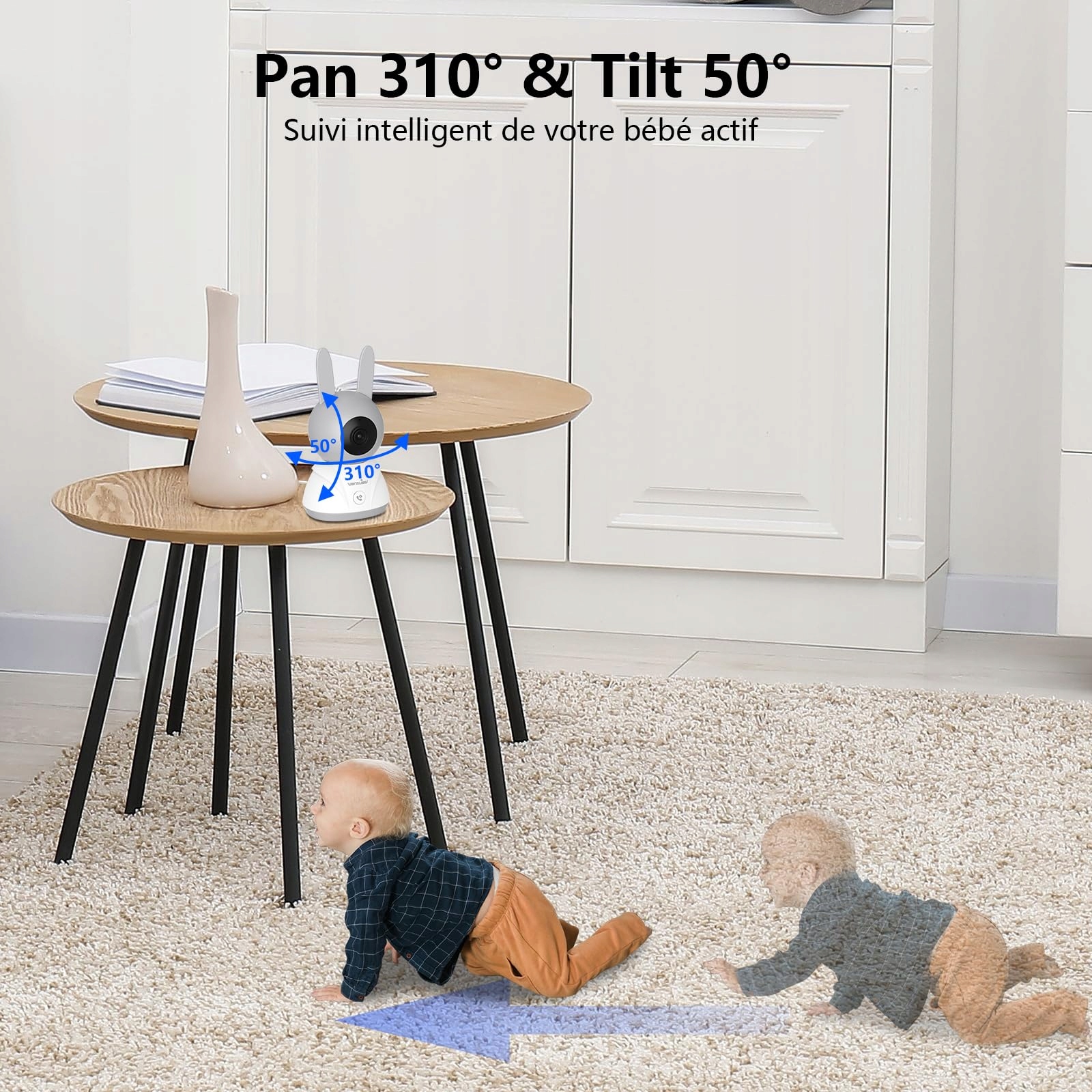 Wyraźny obraz, 5-calowy ekran, obrót 310°/50° i widzenie nocne: Ciesz się wyraźnym obrazem na żywo w 1080P przez aplikację/monitor monitora dla niemowląt z kamerą i aplikacją. Obiektyw obracany o 310°/50° obejmuje cały pokój i automatycznie śledzi ruchy dziecka. Dzięki zrzutom ekranu, nagraniom wideo i odtwarzaniu nie przegapisz żadnej cennej chwili. Niewidzialne podczerwone widzenie nocne 940nm zapewnia wyraźny obraz w nocy bez zakłócania dziecka – możesz także wyłączyć lampkę sygnalizacyjną w aplikacji