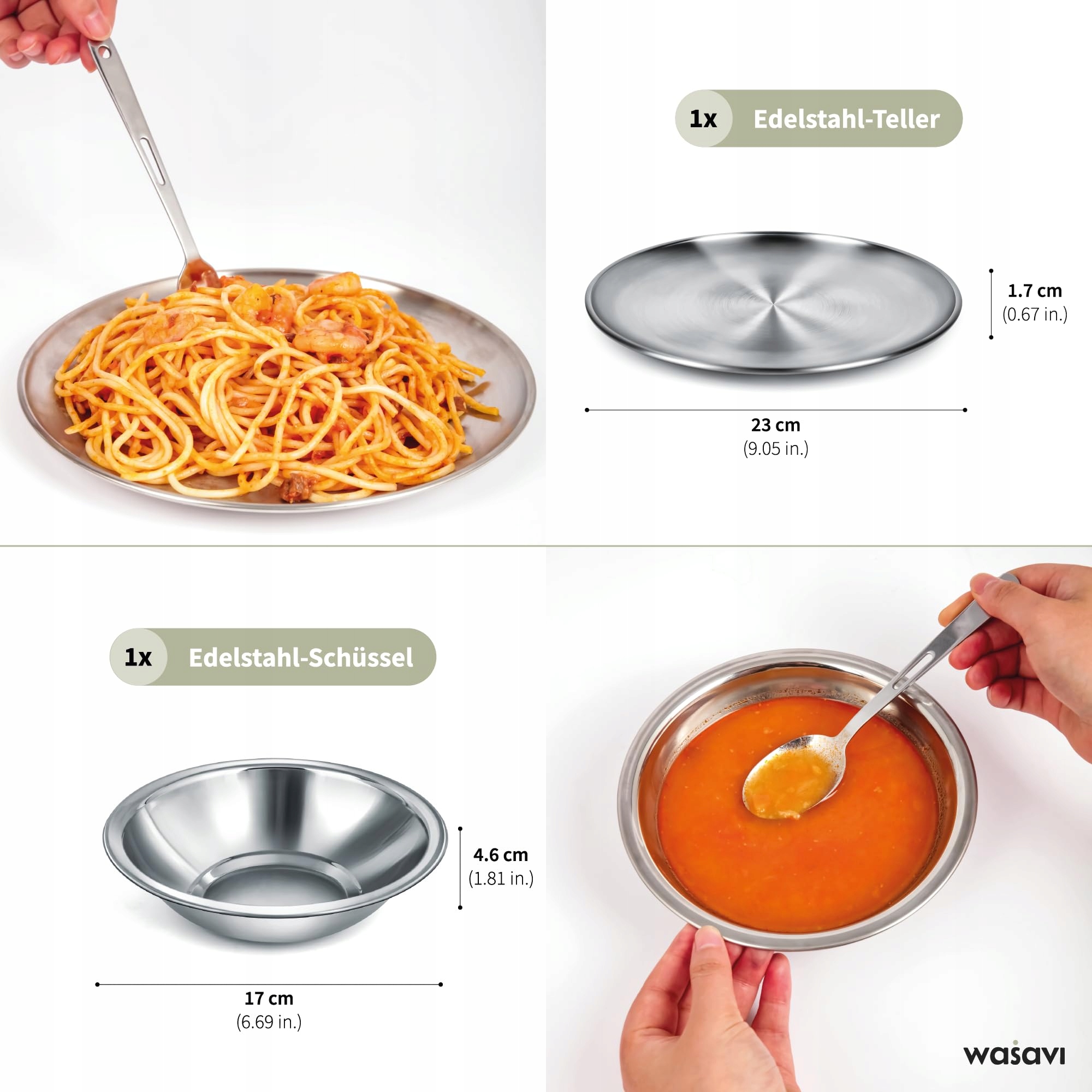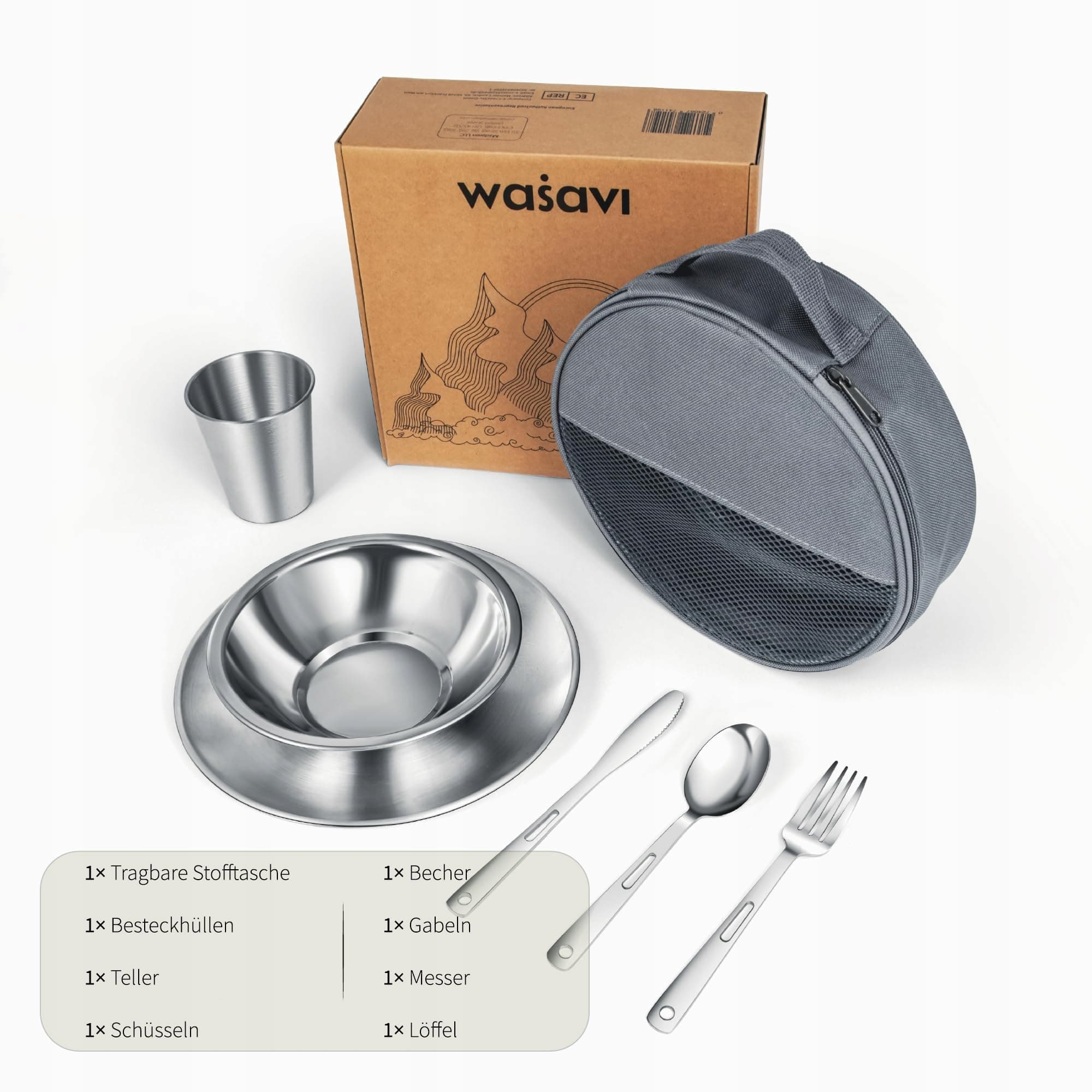 Wasavi Zestaw Naczyń Turystycznych 1 Osoba Sztućce Stalowe Outdoor