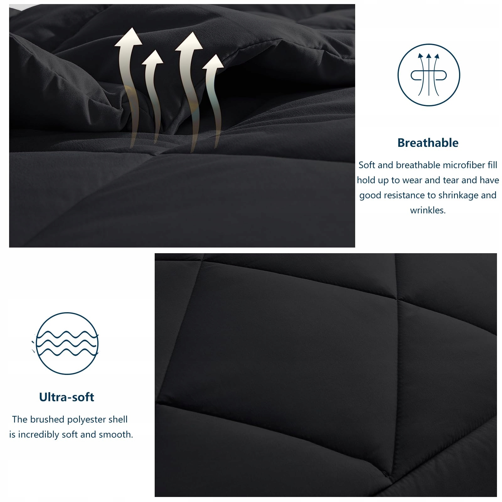 WAVVE Kołdra 240x220 cm 4 Pory Roku Mikrofibra Czarna | Premium Supply