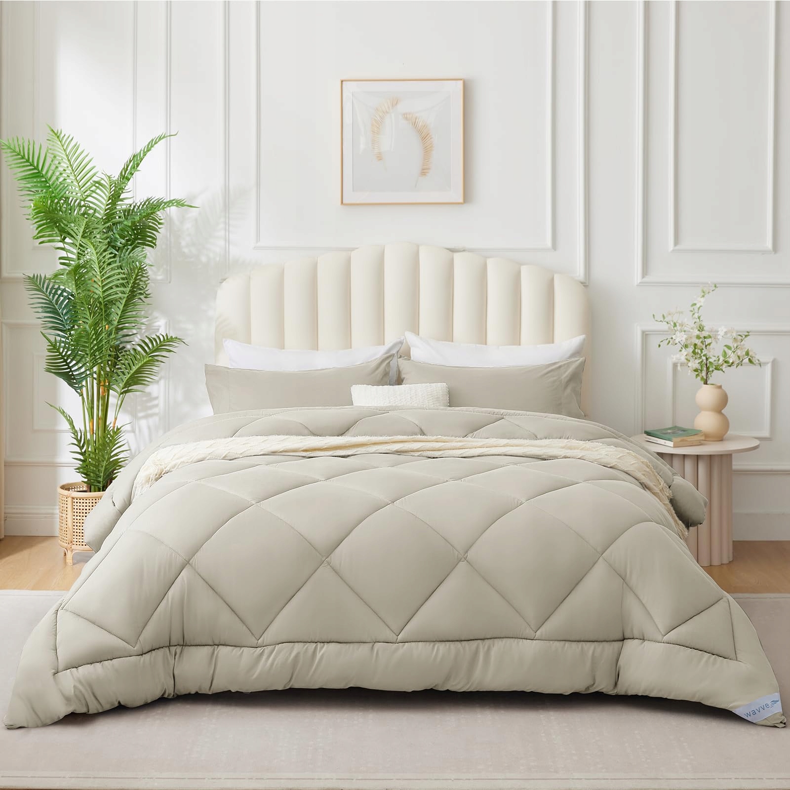 WAVVE Kołdra 200x200cm Kołdra całoroczna 4 pory roku, Kołdra pikowana 300gsm Mikrofibra 200x200 cm, Super miękka kołdra do spania Oddychająca 200 x 200 Beżowa