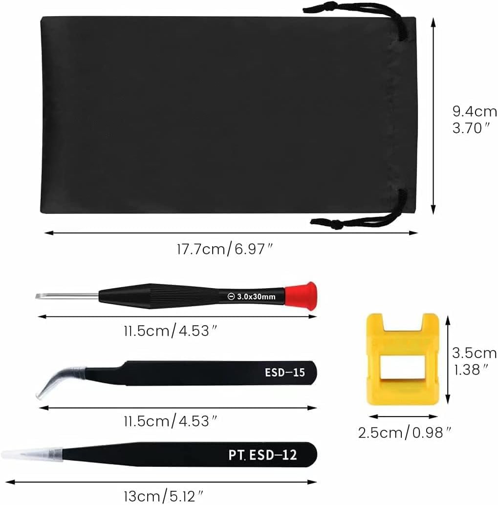 Dodatkowe akcesoria - Ten precyzyjny śrubokręt jest dostarczany z 11 zestawami narzędzi PS4 i 2 różnymi typami pęset do chwytania drobnych elementów, magnesownikiem do podnoszenia części oraz woreczkiem do przechowywania precyzyjnego śrubokręta dla łatwego transportu